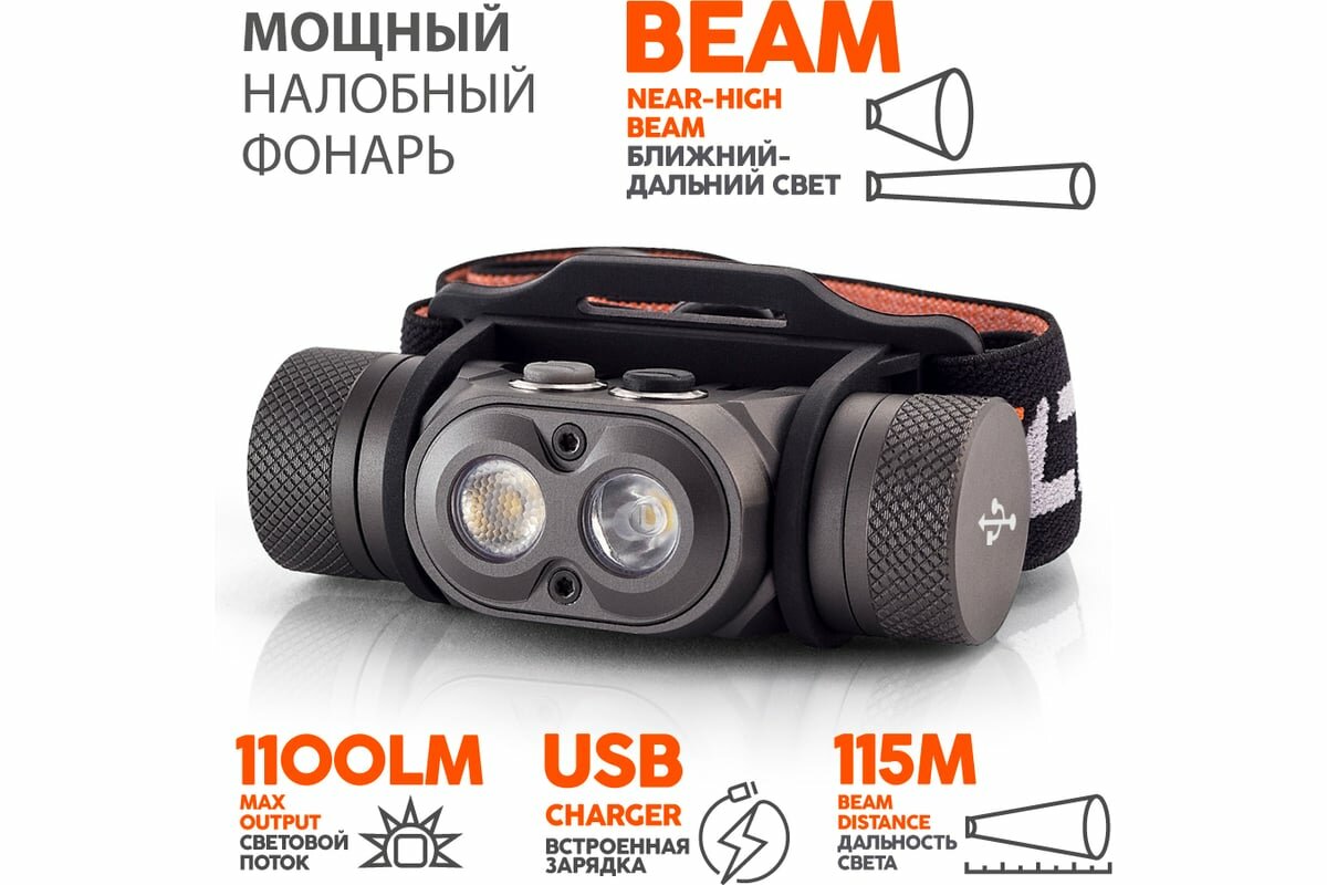 Яркий ЛУЧ Фонарь YLP PANDA 3R налобный CREE XP-L HI+XP-G3 max.1100лм, Li-Ion 2600mAh, встр.ЗУ 4606400106029