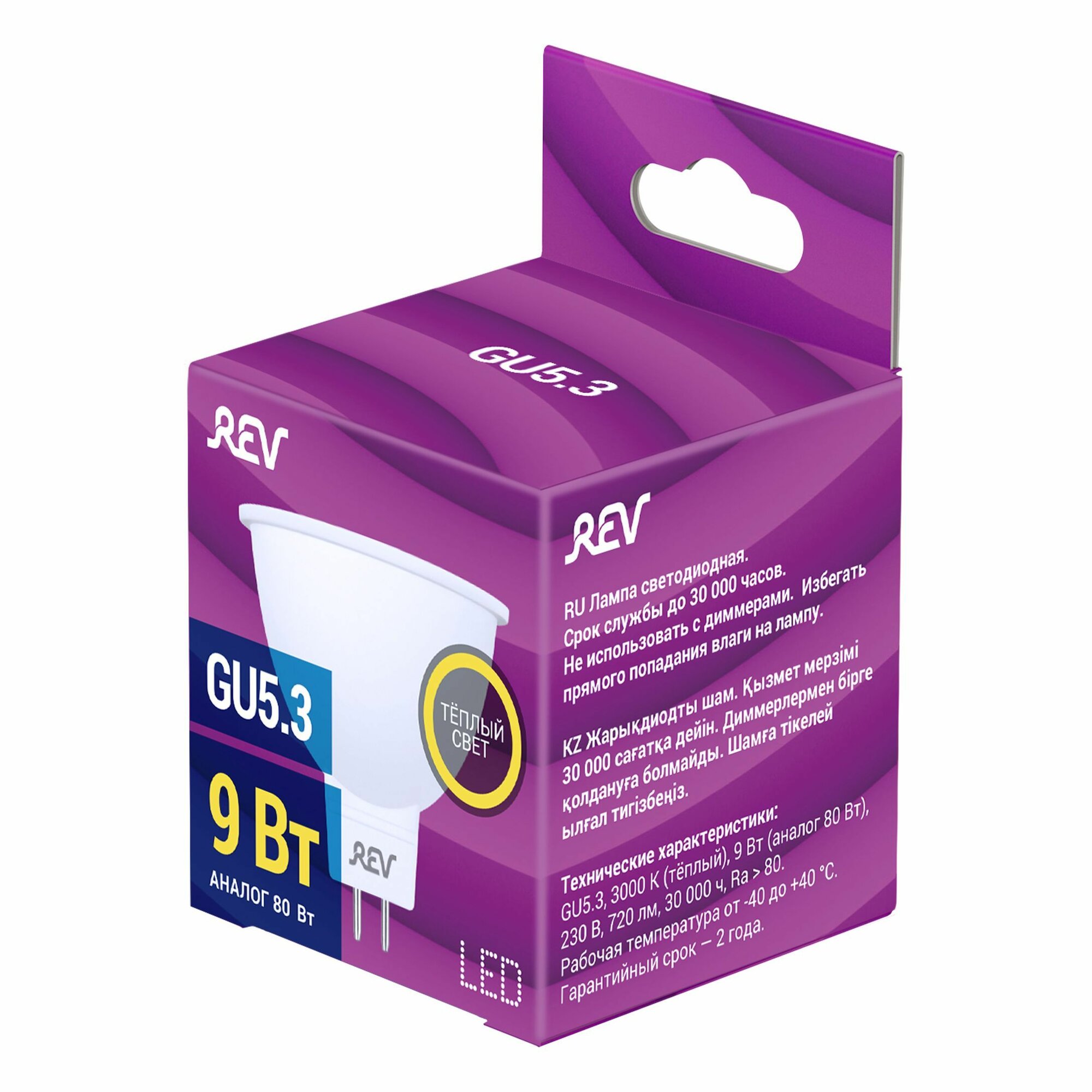 Лампочка REV 32414 GU5.3, 9 Вт, белый