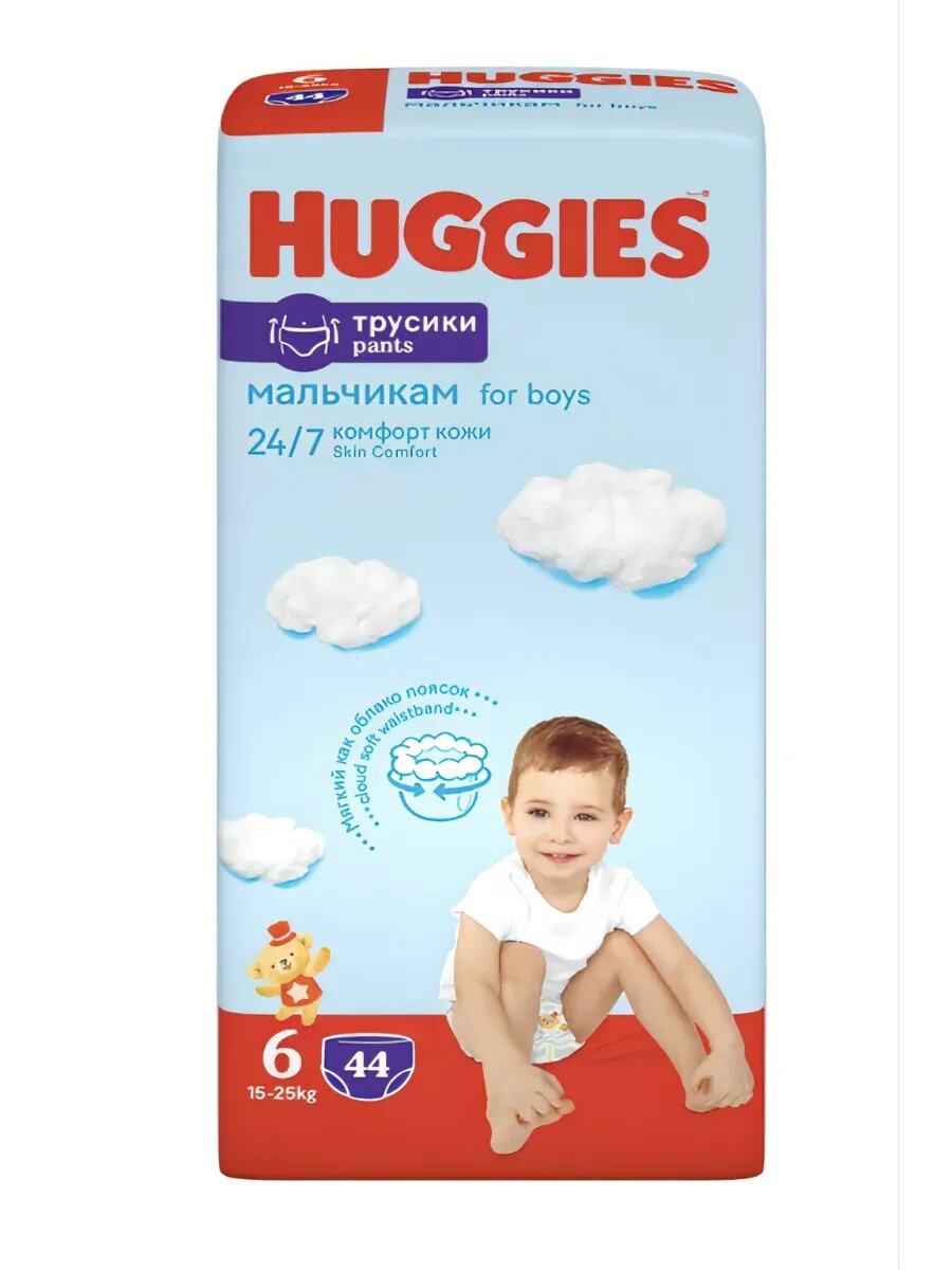 Подгузники-трусики детские для мальчиков HUGGIES 6, 15–25кг, 44шт