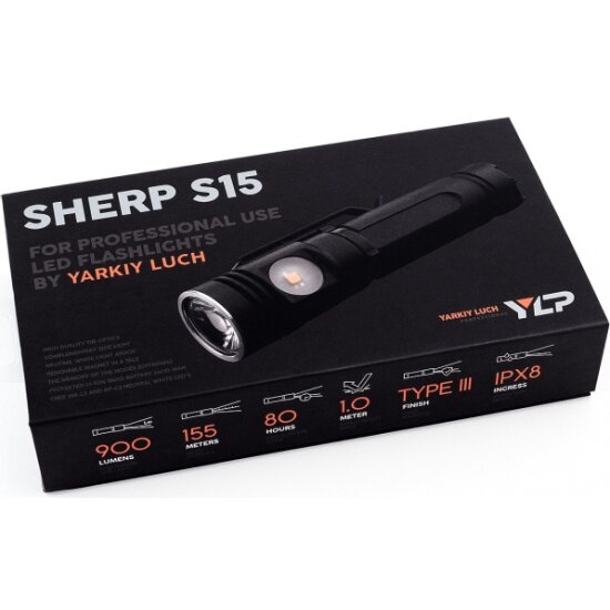 Фонарь яркий ЛУЧ YLP S15 Sherp CREE XM-L2 900лм +боковой XP-G3 200лм, IPX8 (с аккумулятором 2600mAh со встроенным ЗУ) интересное:
