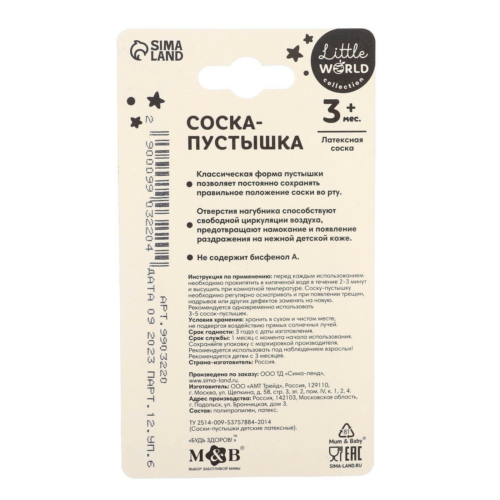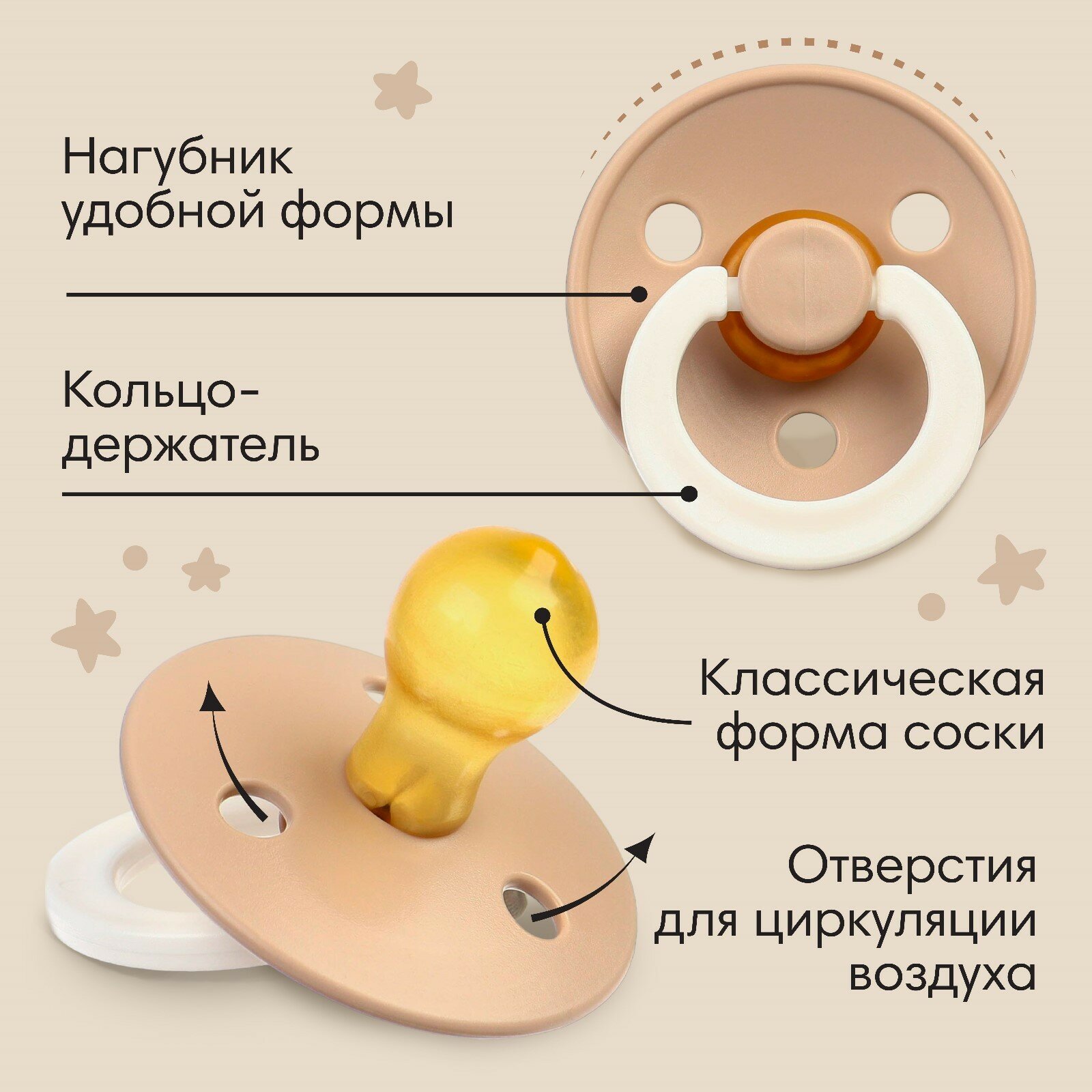 СохранитьСоска - пустышка латексная классическая M&B, от 3 мес, бежевый интересное: