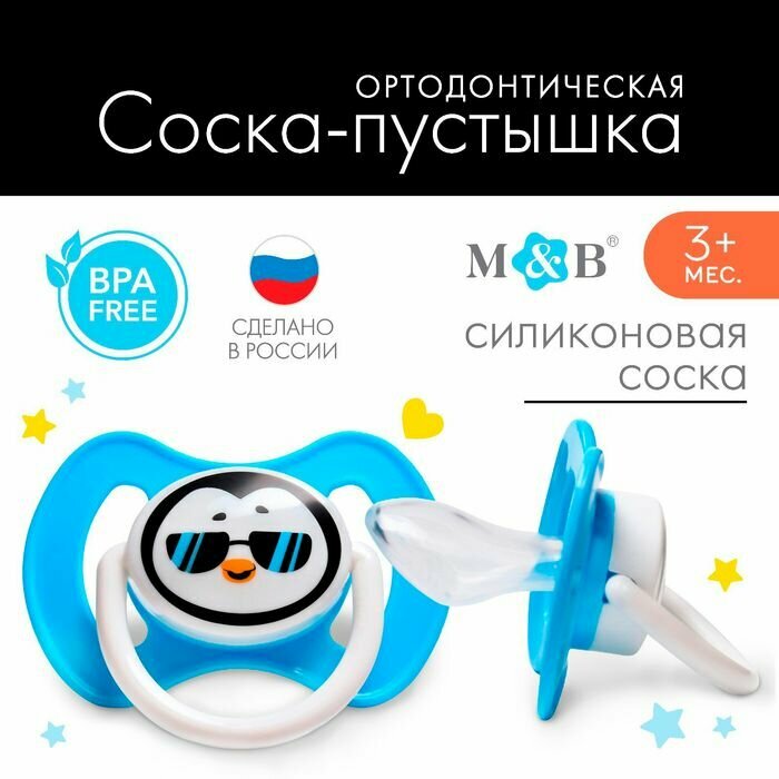 Купить Соска-пустышка силиконовая, ортодонтическая, от 3 мес, тренд. Пингвин