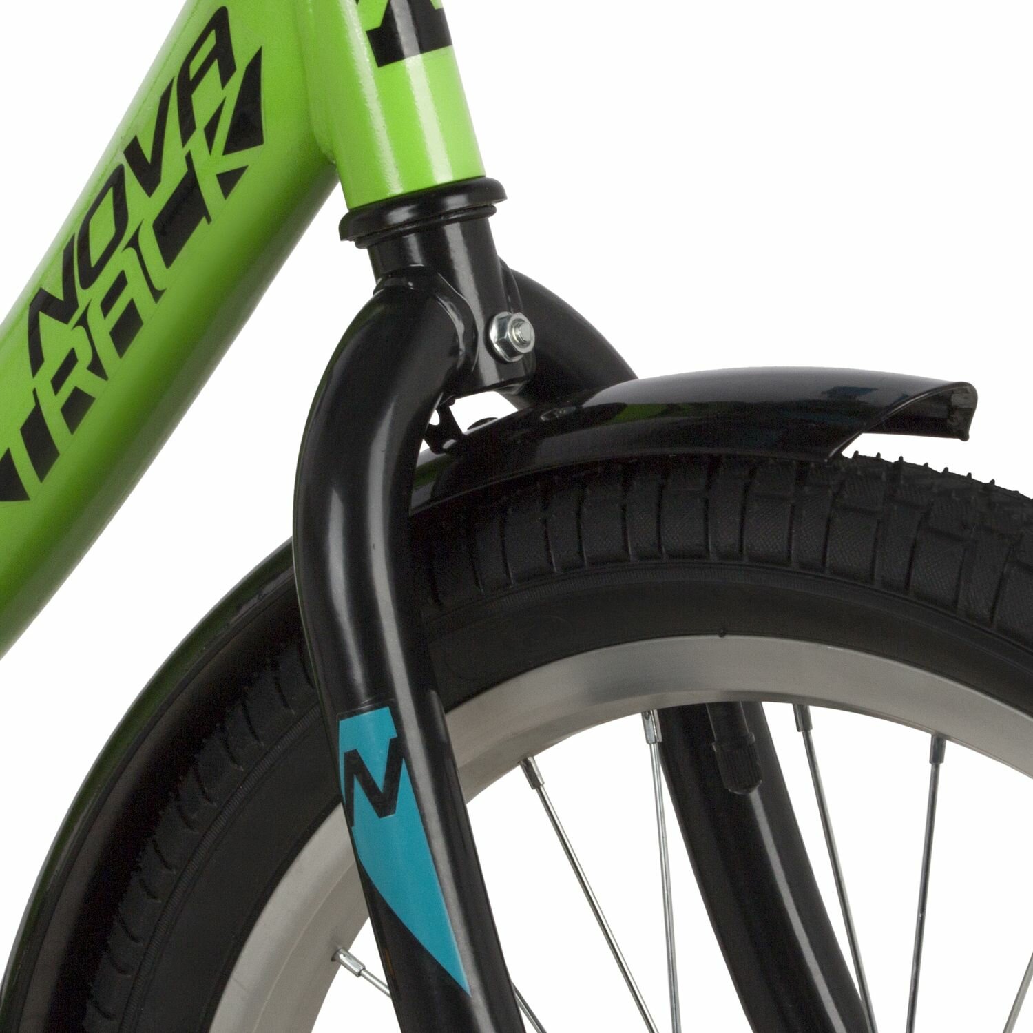 Велосипед NOVATRACK VECTOR 20" (2022) (Велосипед NOVATRACK 20" VECTOR лаймовый, защита А-тип, тормоз нож., крылья и багажник чёрн.)