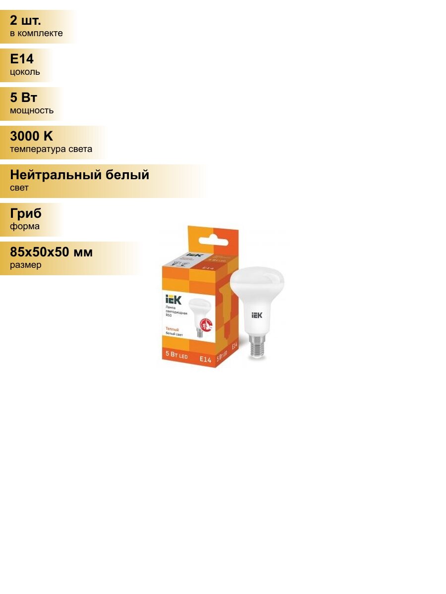 Купить (2 шт.) Светодиодная лампочка IEK R50 E14 5W(450lm) 3000K 2K 85x50 матов. ECO LLE-R50-5-230-30-E14 Нейтральный белый. Цоколь E14