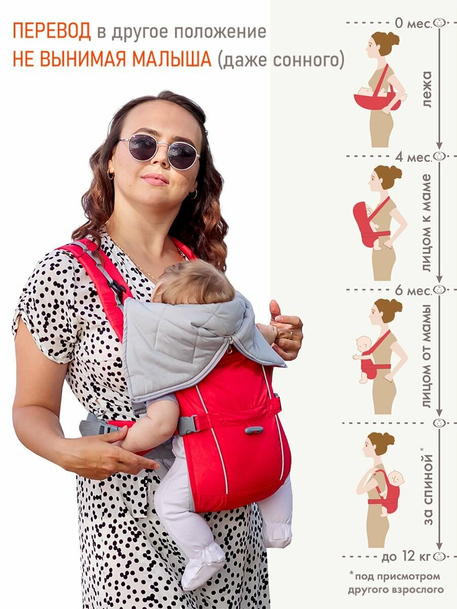 Кенгуру Рюкзак-переноска для новорожденных детей c 0, Чудо-чадо BabyActive Vikont, цвет: красный, c 0 до 24 мес, до 12 кг, 6 положений, эрго интересное: