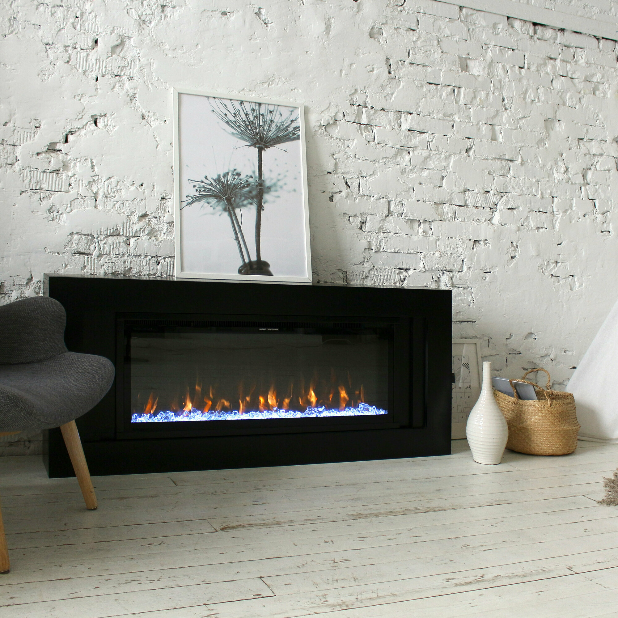 Электрокамин Modern черный, стильный камин с имитацией пламени