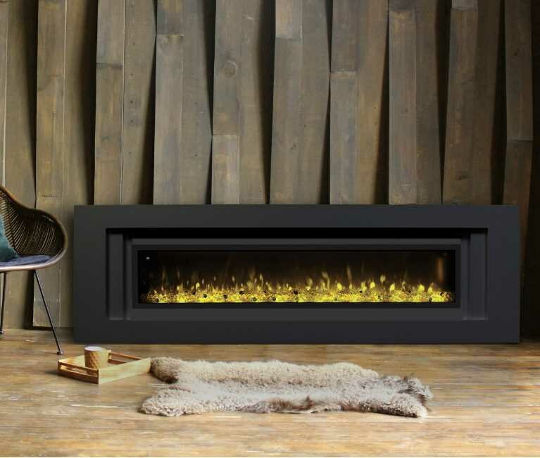 Линейный электрокамин RealFlame Stockholm BLM c очагом Saphir 60, кристаллы, обогрев, пульт ДУ (линейный электрический камин)