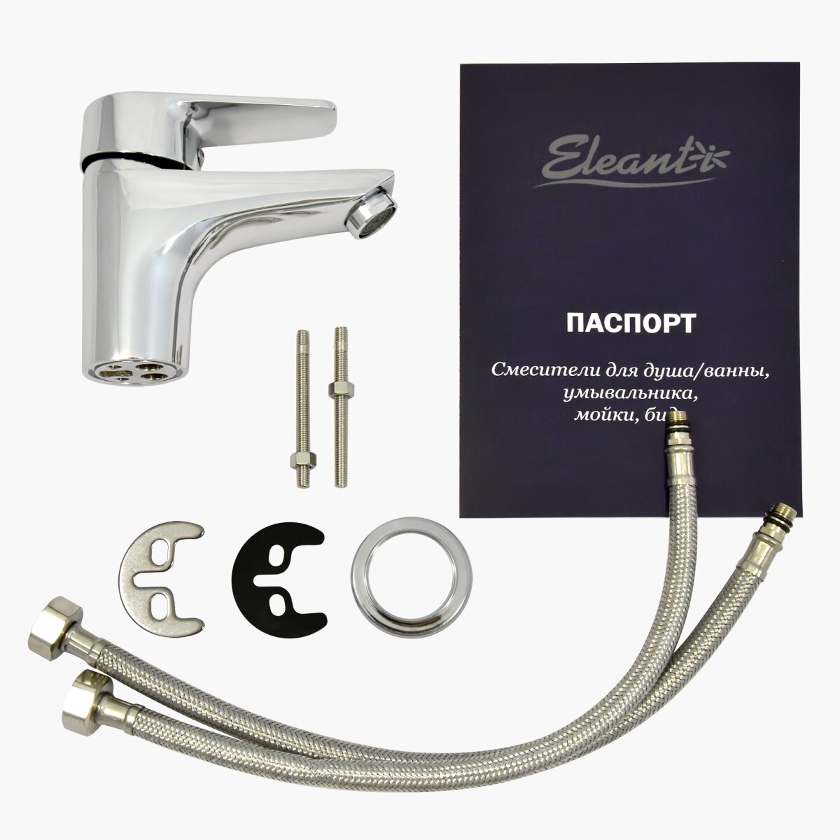 Смеситель для умывальника одноручный "Eleanti" с гибкой подводкой, картридж 40 мм.