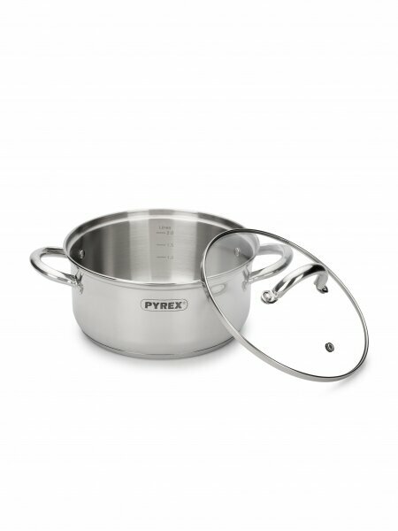 Кастрюля из нержавеющей стали со стеклянной крышкой Master 20x9.5см 2.8л,PYREX