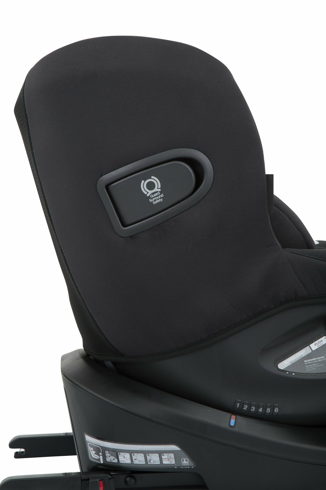 | Особенности | высота кресла спереди 62-76 см, высота сзади 51.5-62 см, упор в пол имеет 19 позиций регулировки и легко адаптируется в любом транспортном средстве; каркас автокресла изготовлен из ударопрочного пластика, в подголовнике и в зоне плеч используется ударогасящий материал — пенопласт |