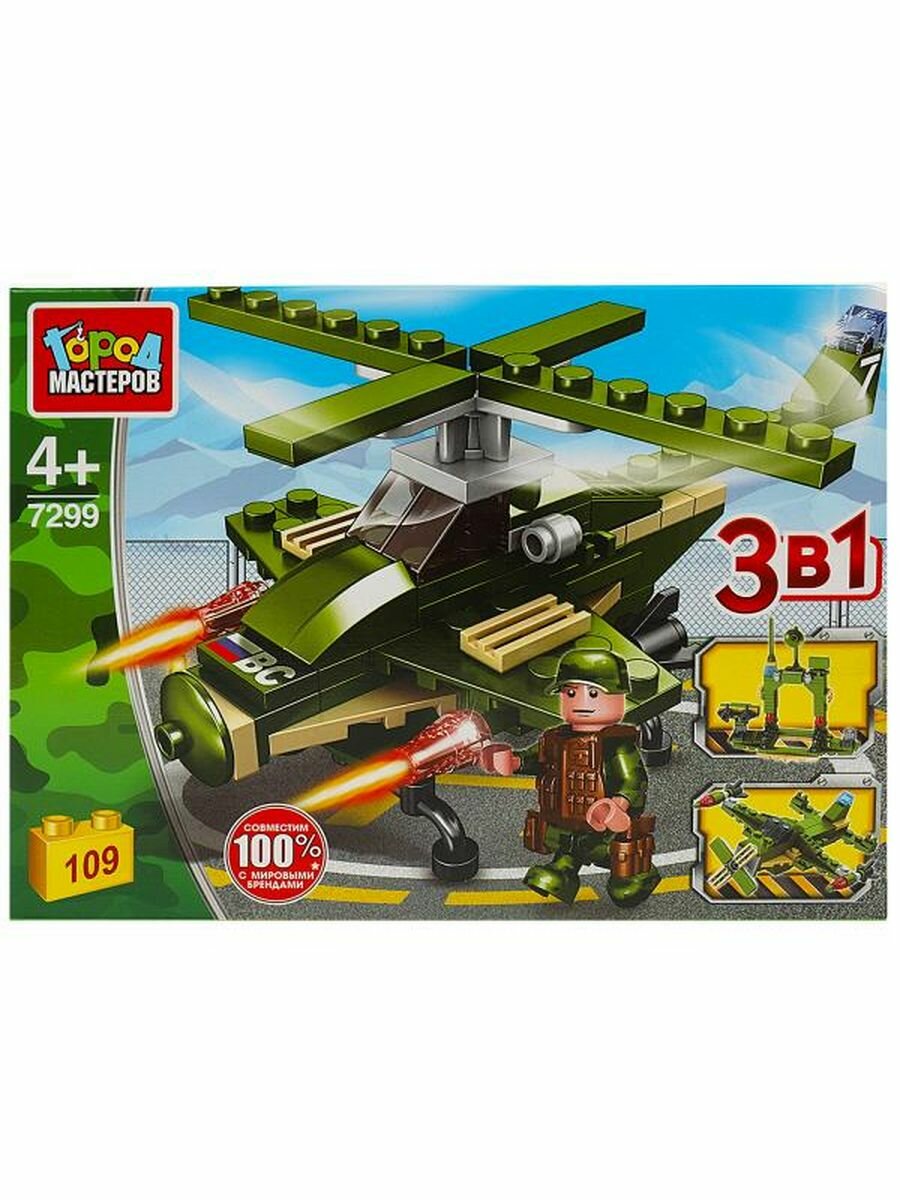 Купить Конструктор "Военный Вертолет 3в1", 109 деталей, ТМ "Город Мастеров", артикул 7299-PZ, от 4-х лет