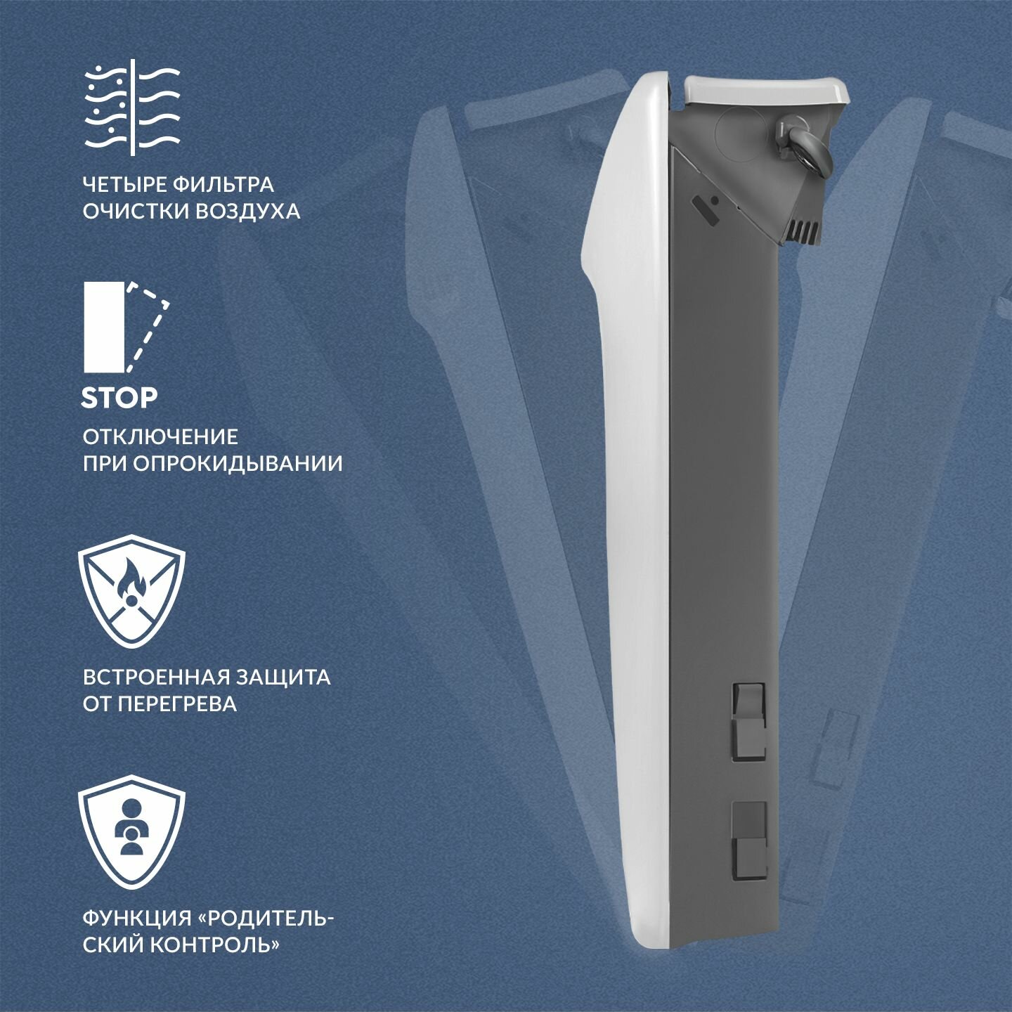 | Системы защиты | влагозащитный корпус / отключение при опрокидывании / отключение при перегреве |