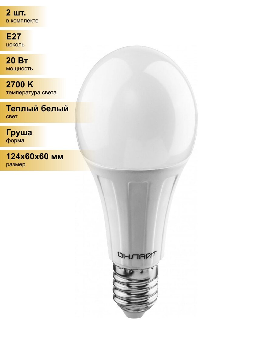 Купить (2 шт.) Светодиодная лампочка онлайт ЛОН A60 E27 20W(1800lm) 2700K 2K 124x60 OLL-A60-20-230-2.7K-E27 61157 Теплый белый. Цоколь E27