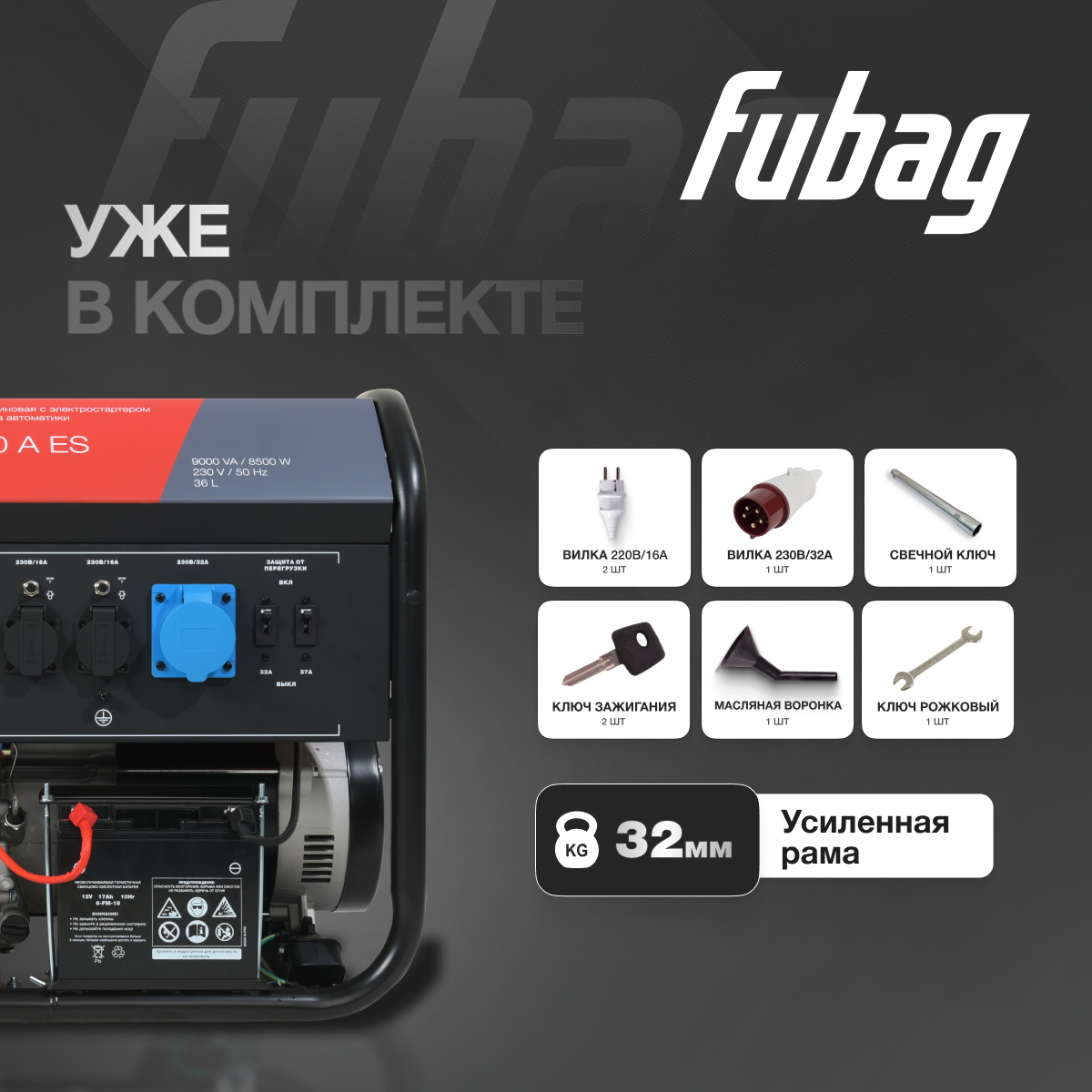СохранитьГенератор бензиновый FUBAG BS 9000 A ES, 9 кВт, 220 В, однофазный интересное: