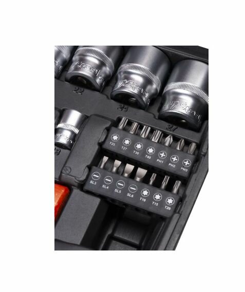 | Дополнительная информация | отверточная рукоятка 1/4″ 150 мм; адаптер для бит 1/4″SQ-1/4HEX; карданный шарнир 1/2″; трещотка 1/2″, 45 зубцов; удлинитель 1/2″ 125 мм; |