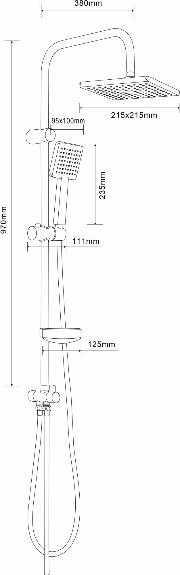 | Комплектация | душевая стойка / верхний душ / ручной душ / шланг / держатель / Смеситель / инструкция / гар. Талон |
