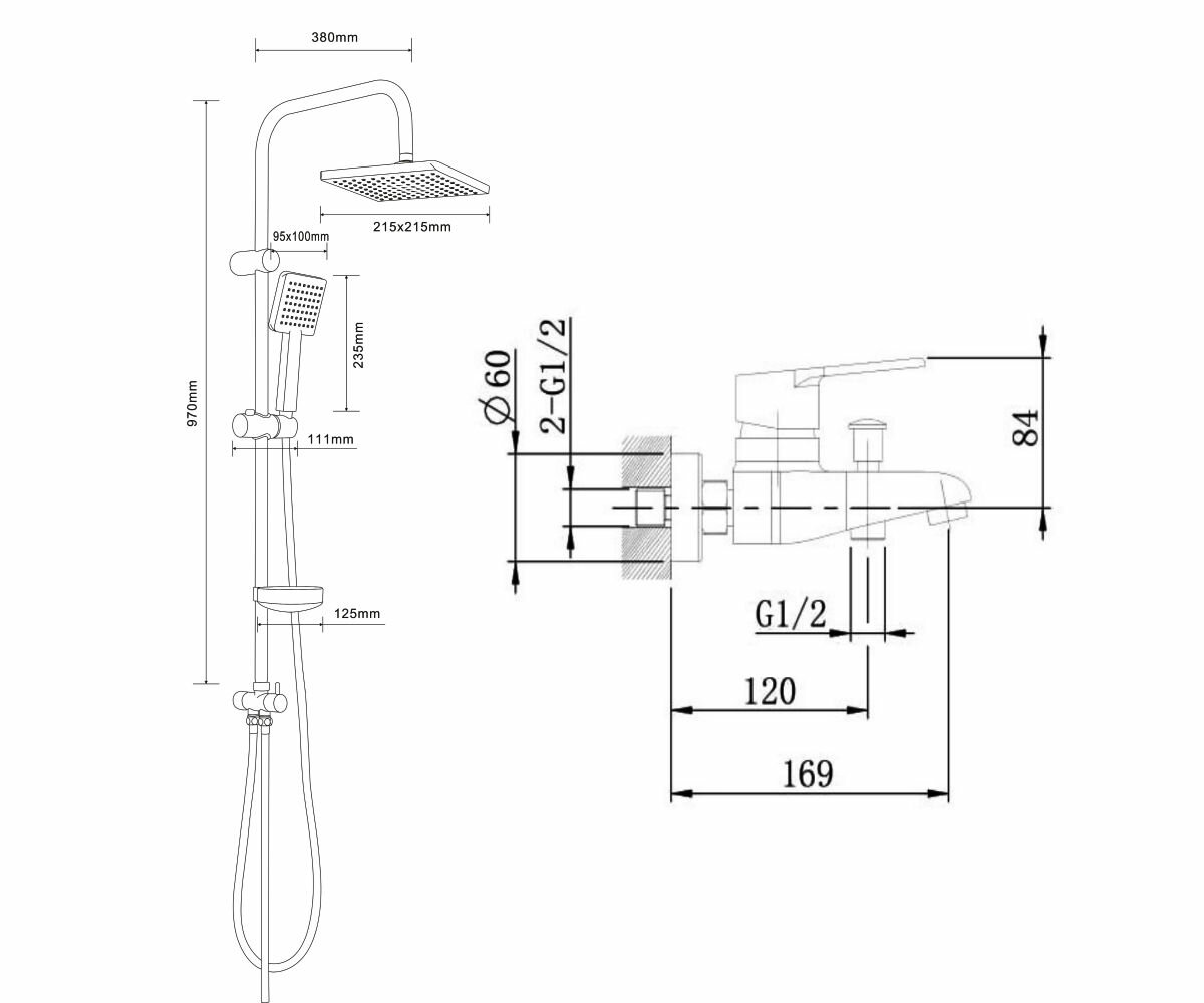 | Форма бокового душа | квадратная |