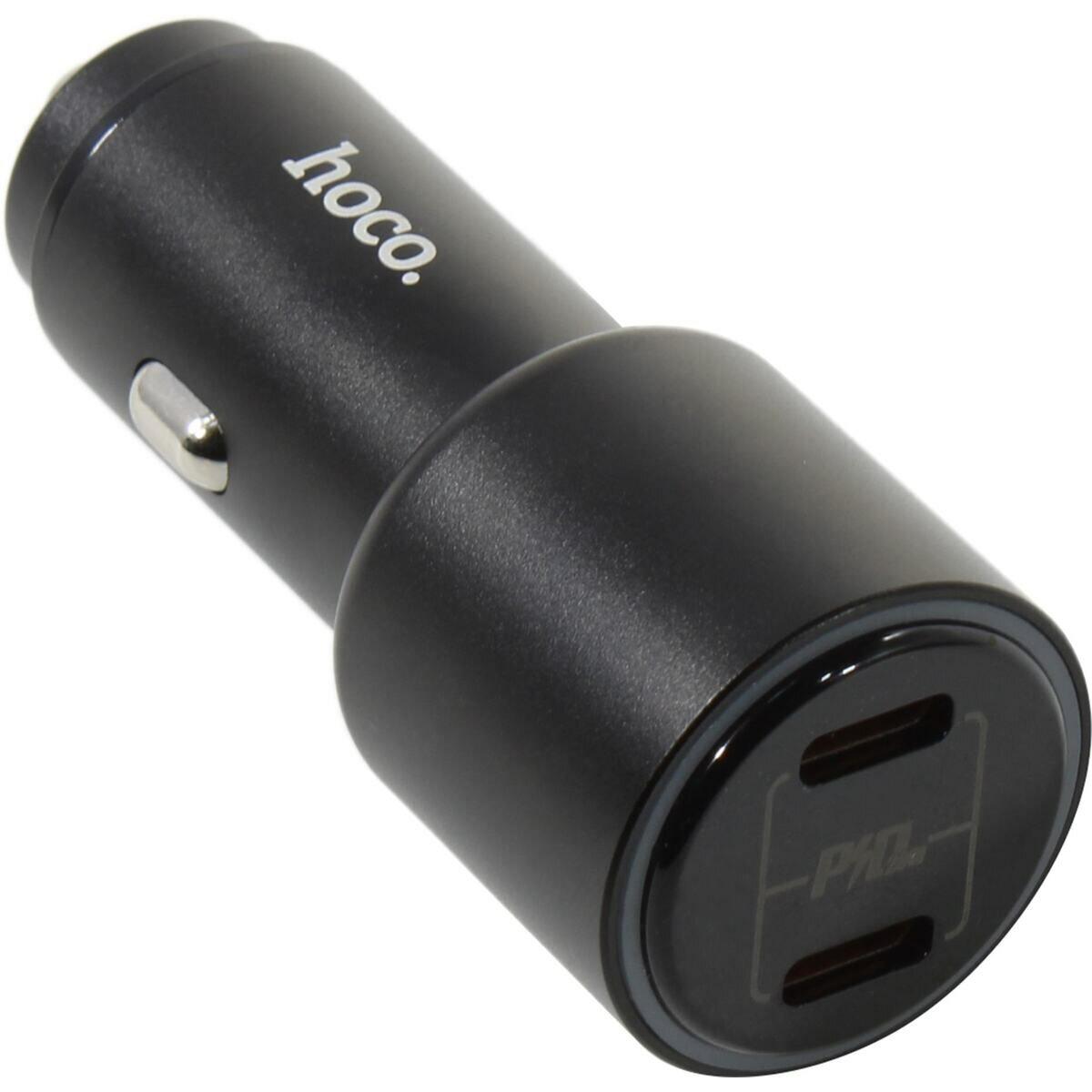 Автомобильное зарядное устройство для телефона, планшета в прикуриватель Hoco, разъемы 2xUSB Type-C, быстрое PD 40W, черное, для iPhone, Android