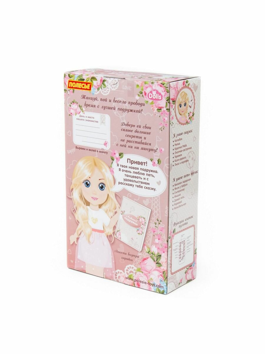 СохранитьКукла интерактивная "Полесье" - "Марина", 37 см на прогулке (ходит, танцует, разговаривает, поёт, рассказывает сказки, воспроизводит мелодии, повторяет слова, туфельки светятся) (в коробке) интересное:
