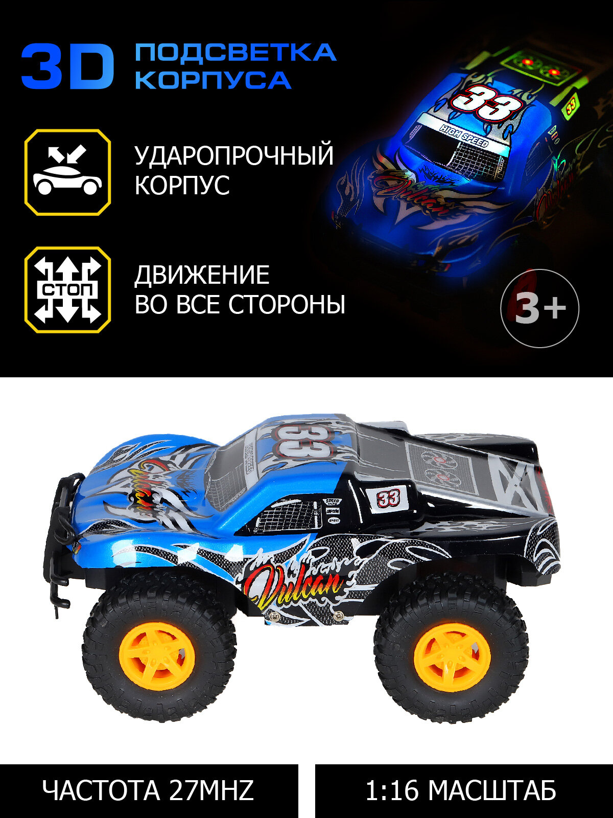Радиоуправляемый Монстр-трак с 3D подсветкой корпуса, М1:16, аккумулятор, цвет синий (JB1168533)