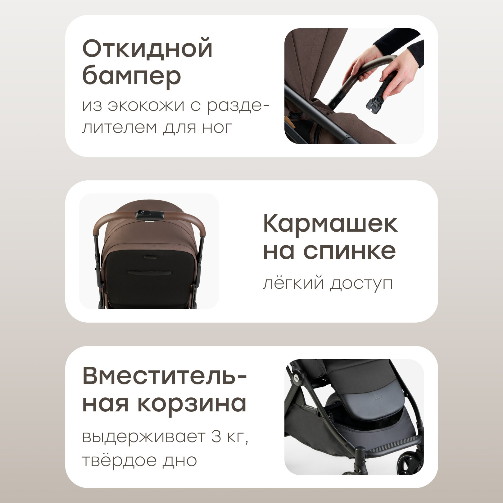 СохранитьКоляска прогулочная детская Happy Baby Luna 360, реверсивный блок 360 градусов, темно-коричневая интересное: