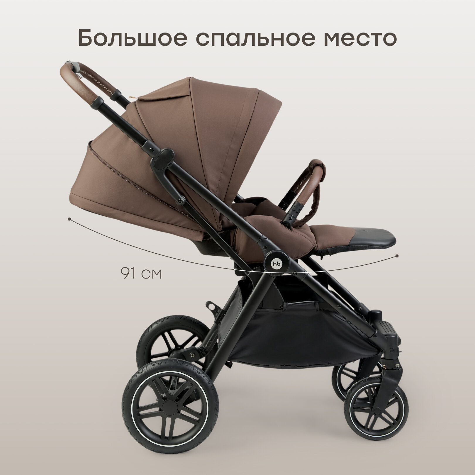 Коляска прогулочная детская Happy Baby LUNA, съемный бампер, капюшон, дождевик, москитная сетка, коричневая обивка, черная ручка