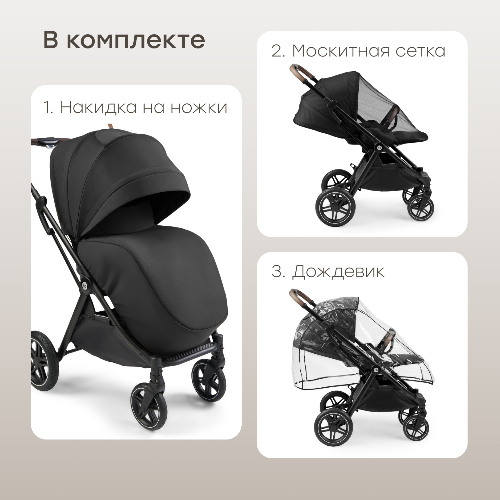 | Аксессуары в комплекте | антимоскитная сетка, бампер, дождевик, накидка на ноги, подстаканник, солнцезащитный козырек |