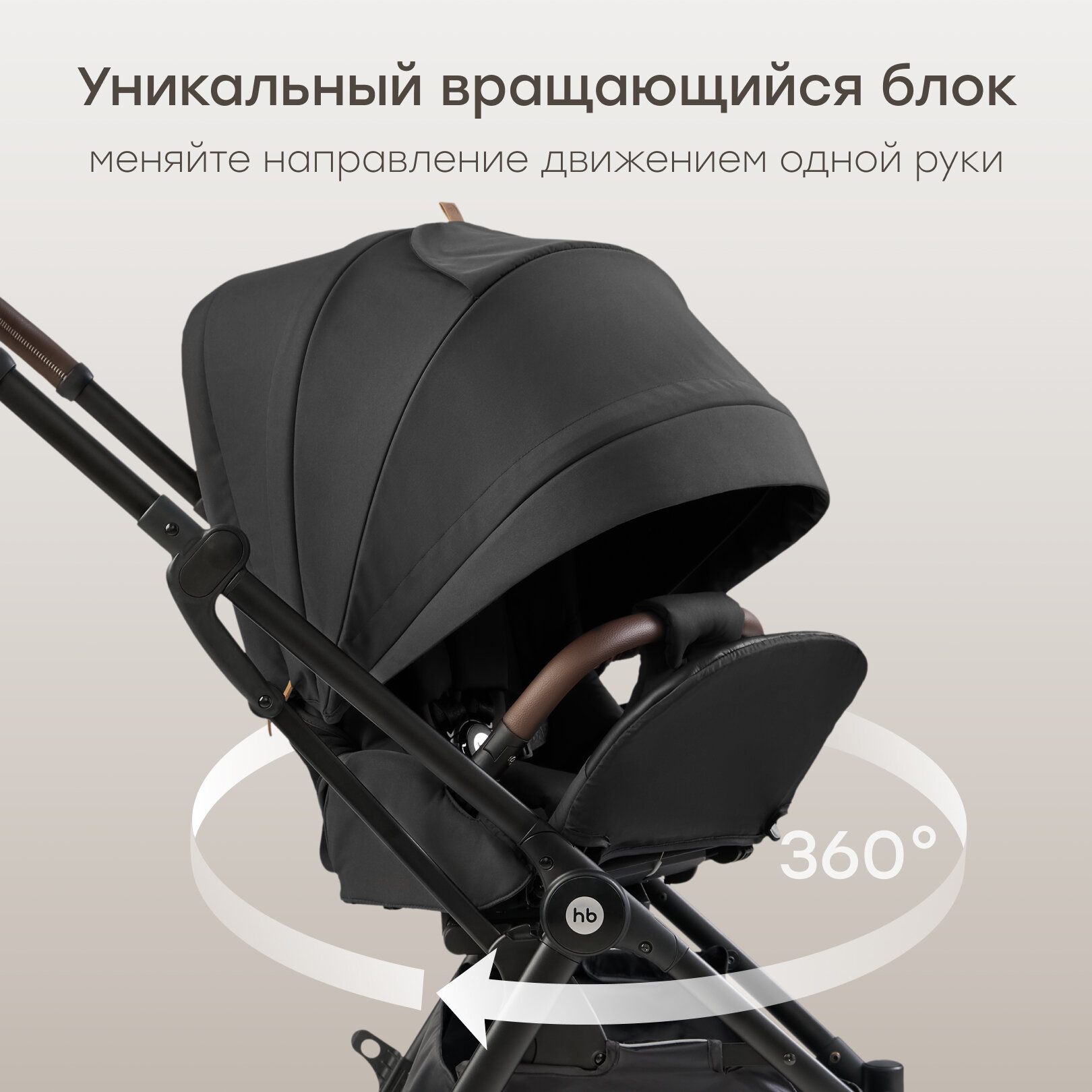 Коляска прогулочная детская Happy Baby Luna 360, реверсивный блок 360 градусов, темно-коричневая