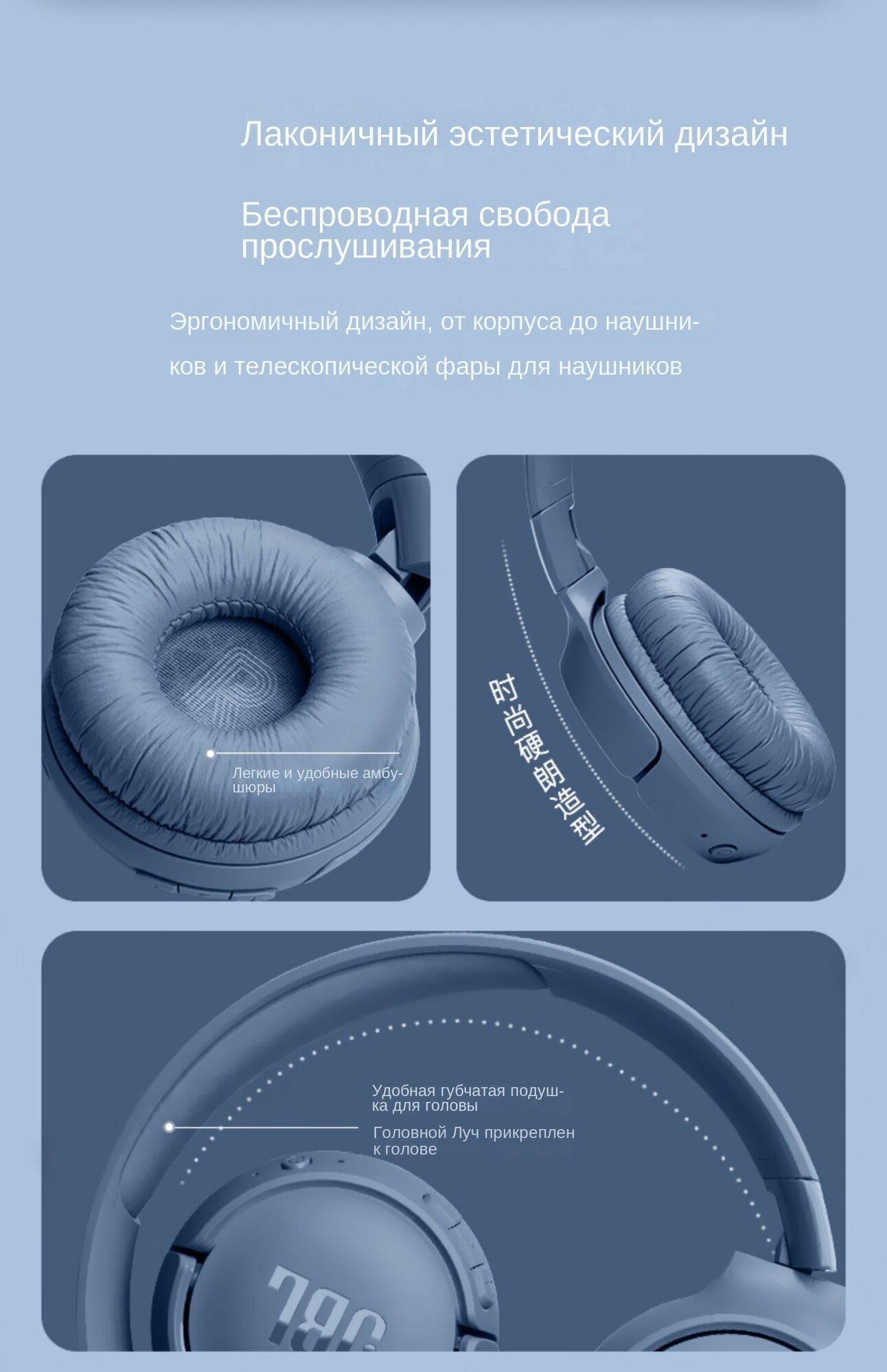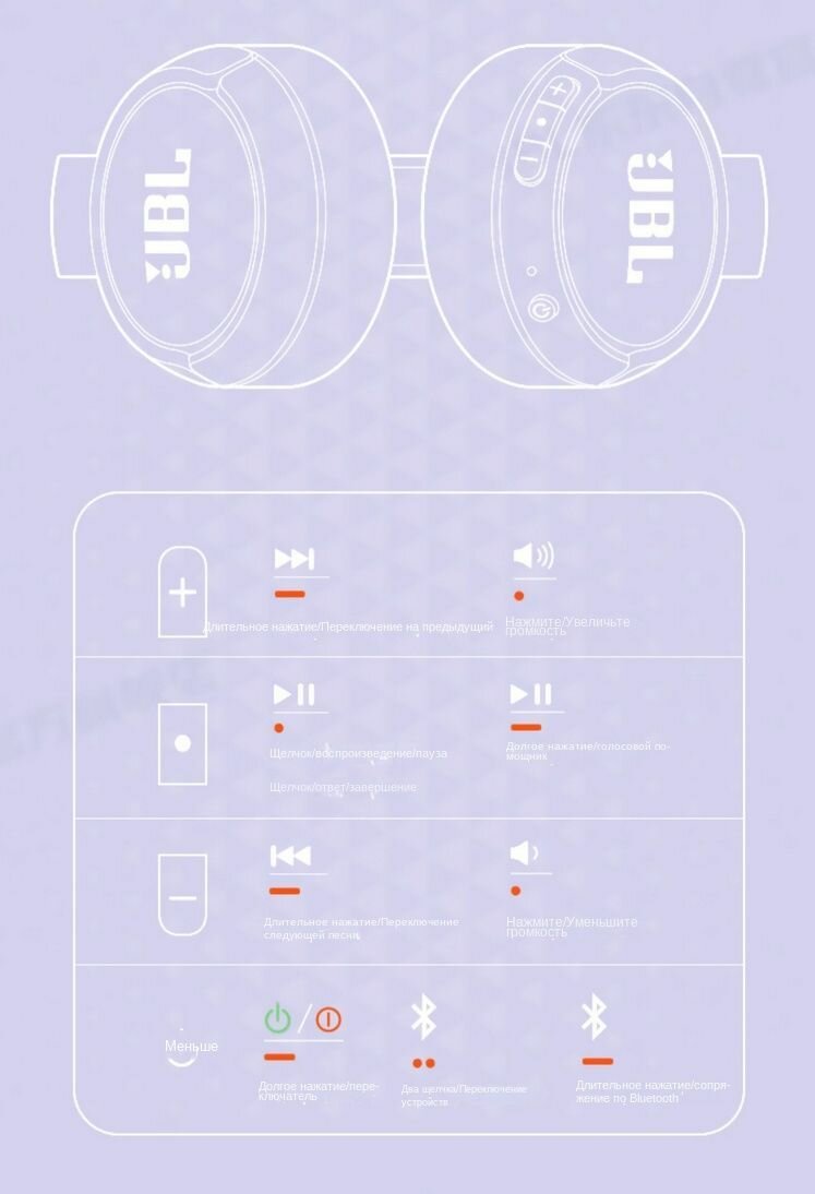 | Минусы: | В жизни меньше, чем на фото, чашки жмут уши, долго не поносишь. Внешний вид уступает JBL E50BT. Нет кабельного подключения. Микрофон годится только для звонков |
