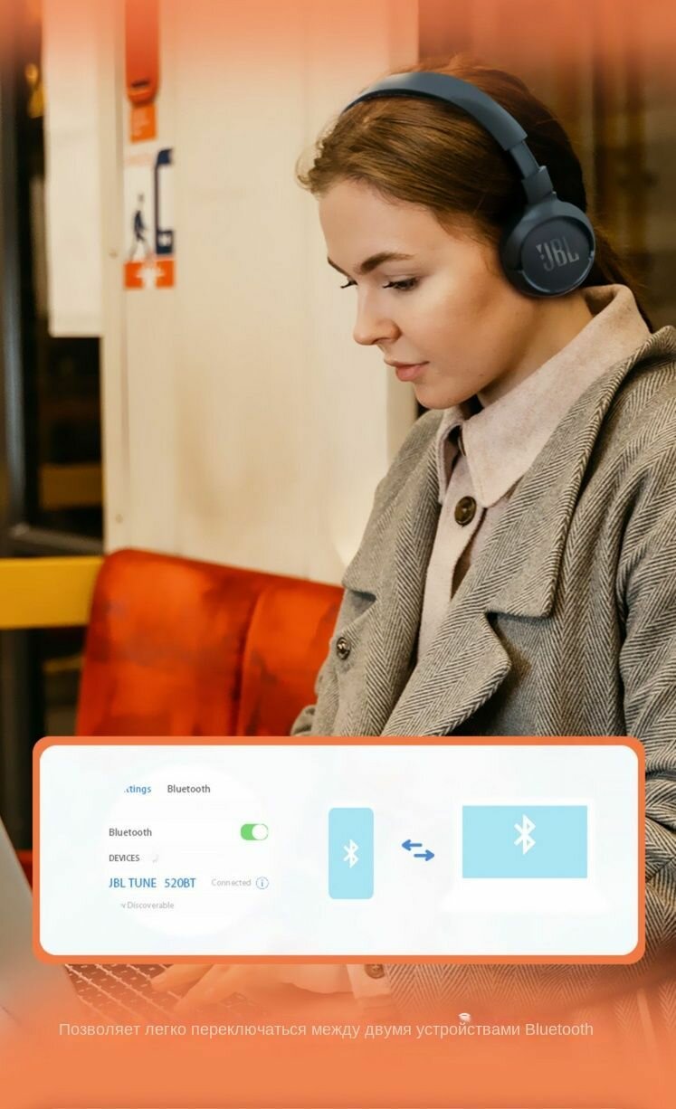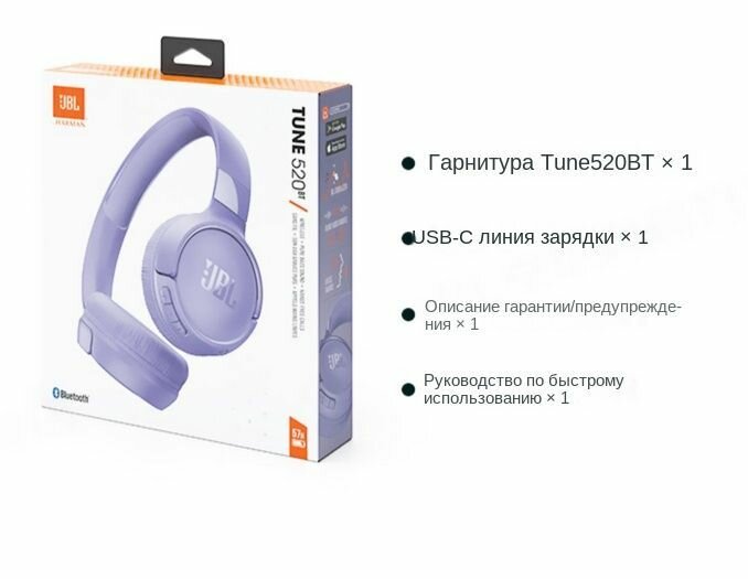 Беспроводная Bluetooth-гарнитура JBL Tune 520BT, черная, для установки на голову, с шумоподавлением