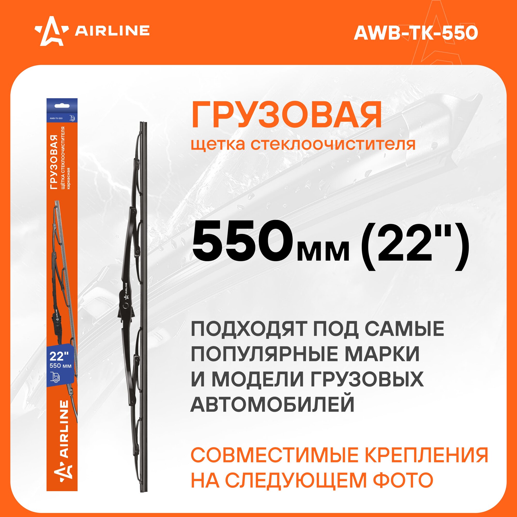 Щетка Стеклоочистителя 550 Мм (22) Каркасная Грузовая (Awb-Tk-550) AIRLINE арт. AWBTK550