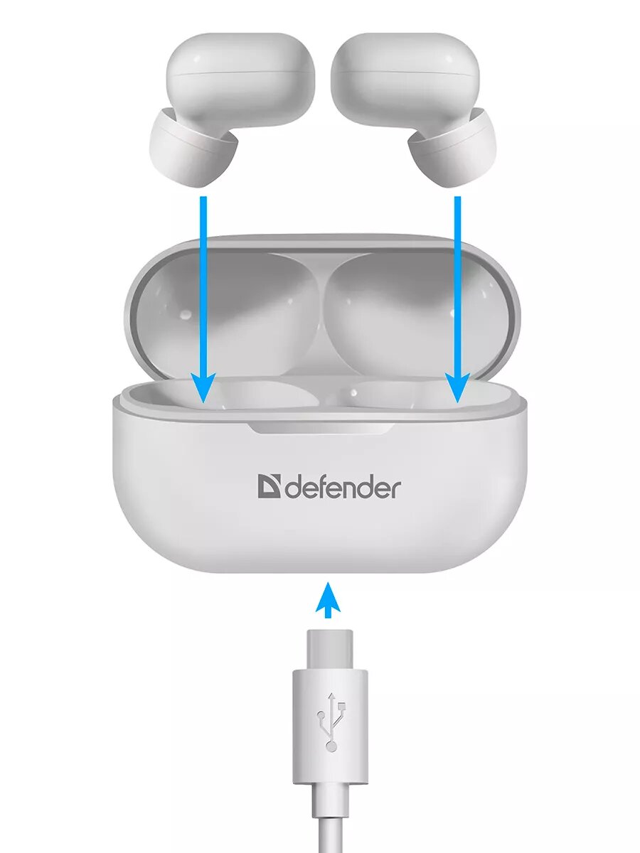 Беспроводные наушники с микрофоном Defender Twins 905 белый, TWS, Bluetooth