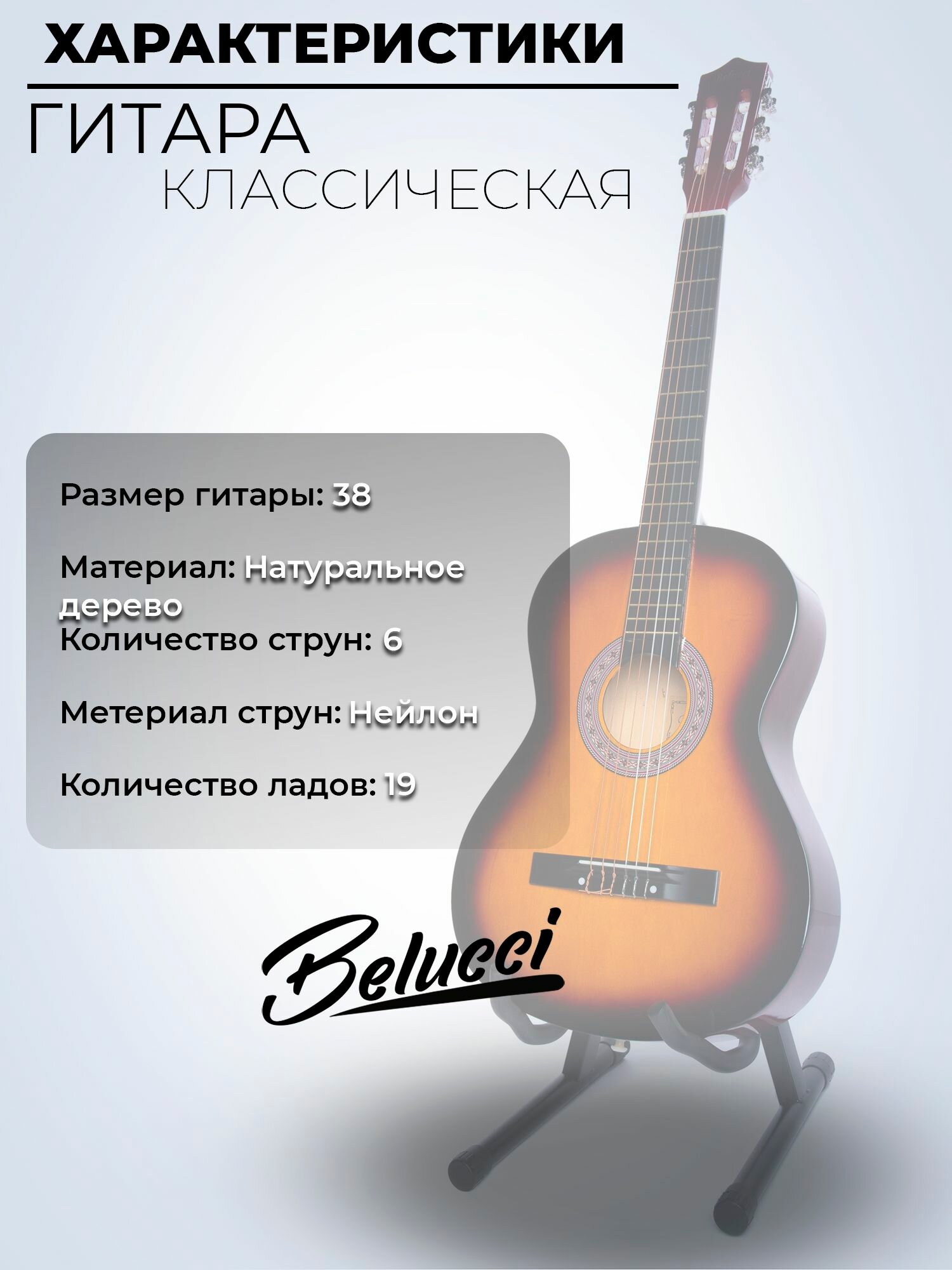 Гитара классическая 38" 7/8 Санбёрст (Инструмент начинающего музыканта, Belucci BC3805 SB) интересное:
