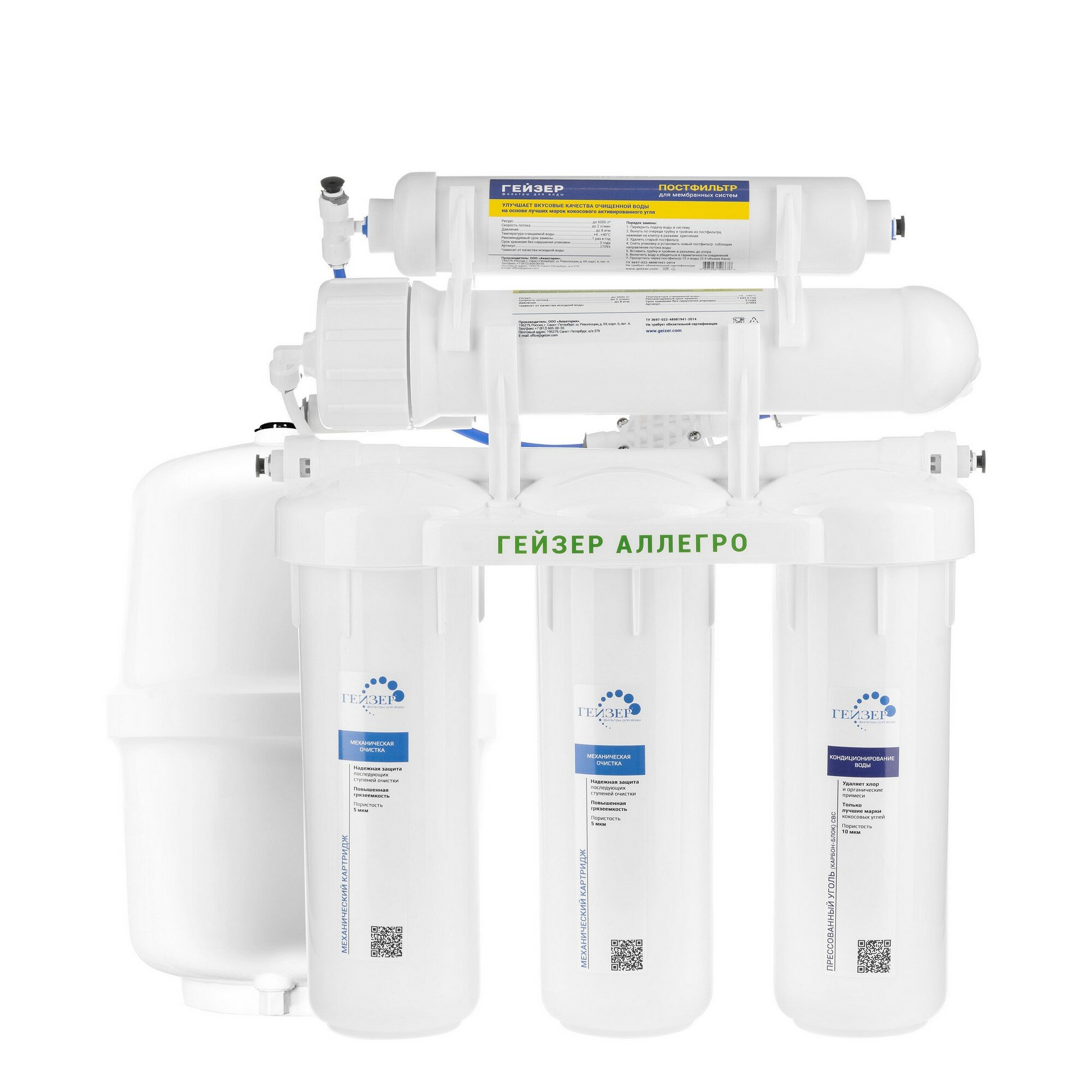 Купить Фильтр для воды с обратным осмосом Гейзер Аллегро без крана, 5 ступеней очистки, накопительный бак 12 литров