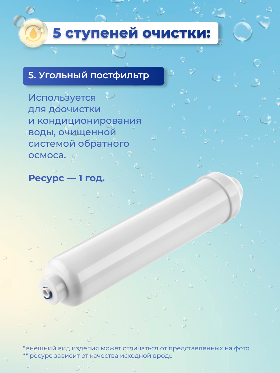 | Плюсы: | Отличный фильтр для воды "под раковину" для мягкой воды. Можно пить воду сразу из фильтра - делает био-очистку воды. |