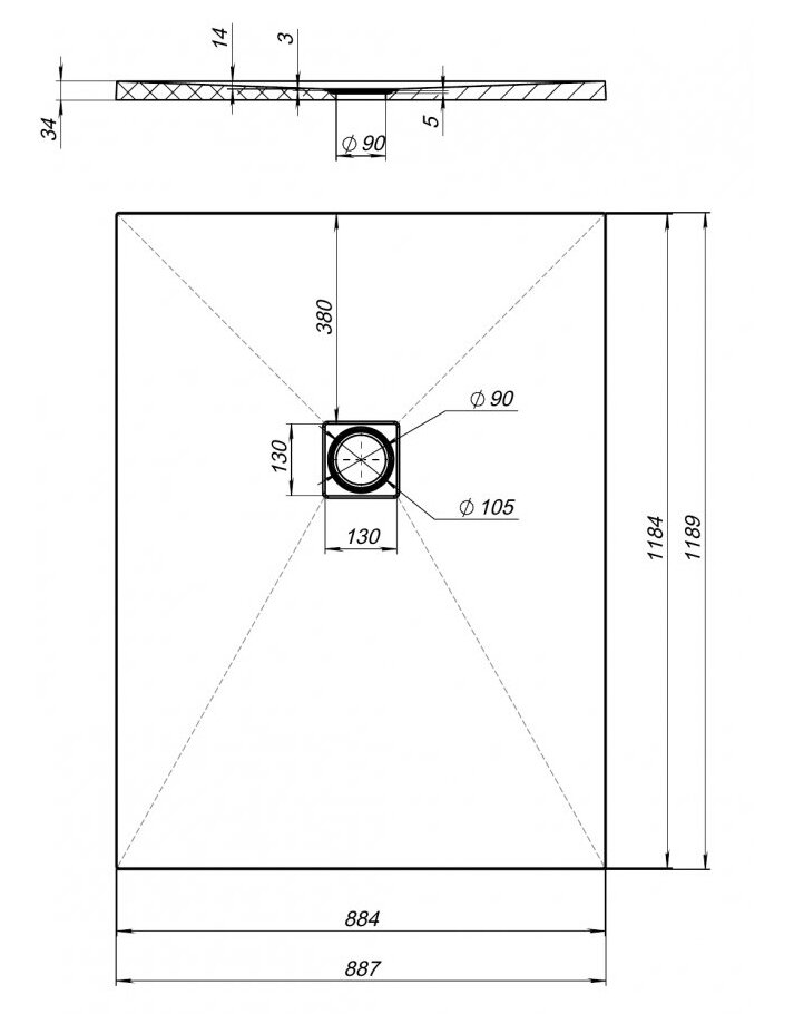 Душевой поддон акриловый белый 90х90см Damixa DX35WT-405-090MT