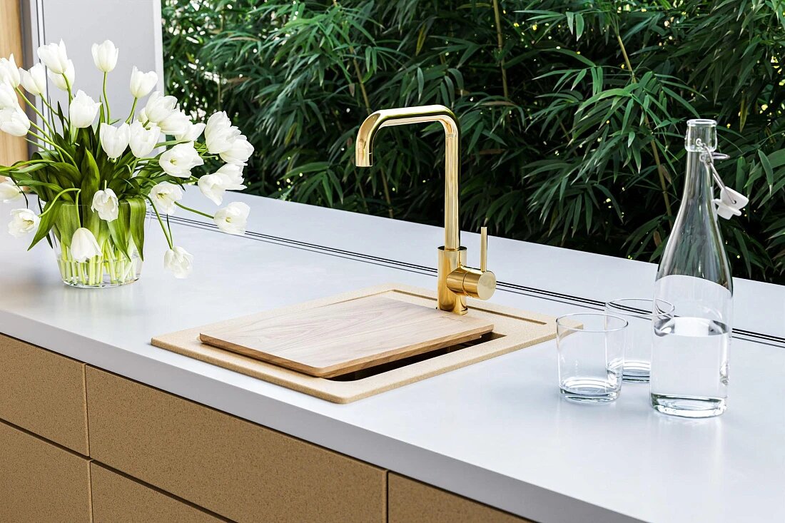 Раковина для кухни врезная каменная Alveus Granital Atrox 10 TERRA - G22 400 X 500 1X / кухонная мойка накладная из искусственного камня, гранит, бежевый
