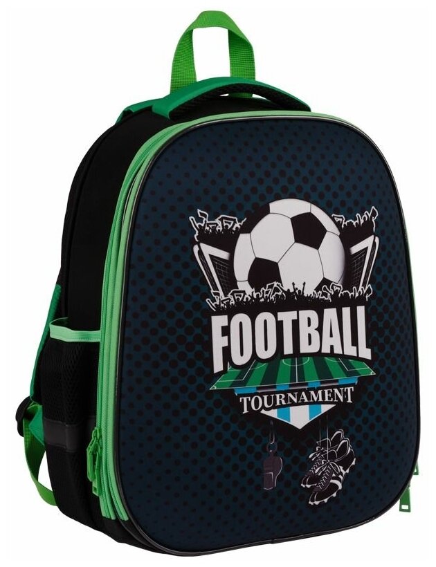 ArtSpace ранец/ рюкзак/ школьный с ортопедической спинкой для мальчика School Friend Football, зеленый/синий