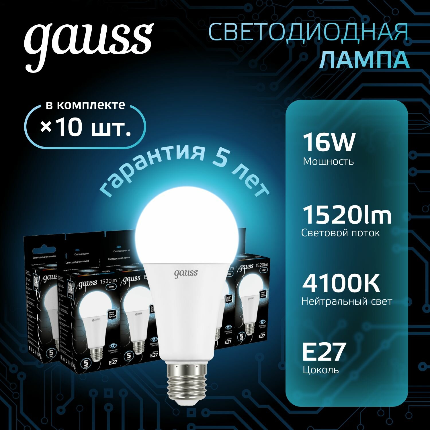 Набор из 10 штук Лампа Gauss A60 16W 1520lm 4100K E27 LED 1/10/50