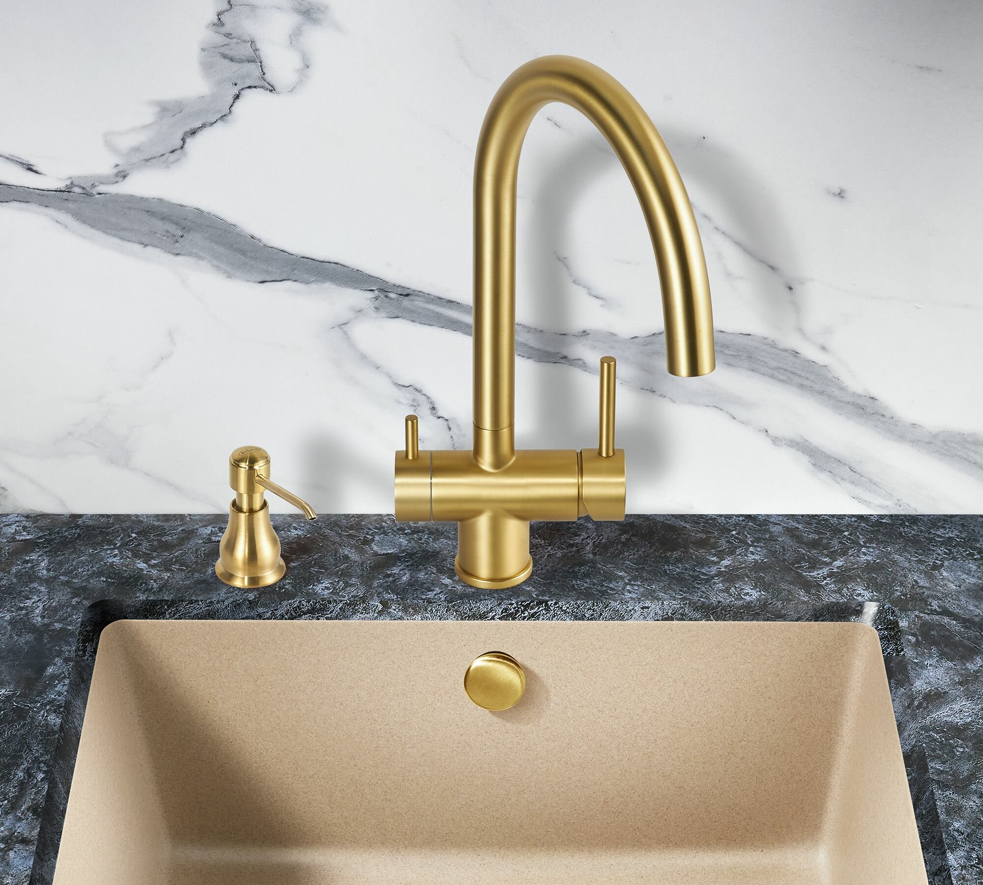 СохранитьСмеситель для кухни с краном для питьевой воды Milacio Ultra ( MCU.554. GD ) золото интересное: