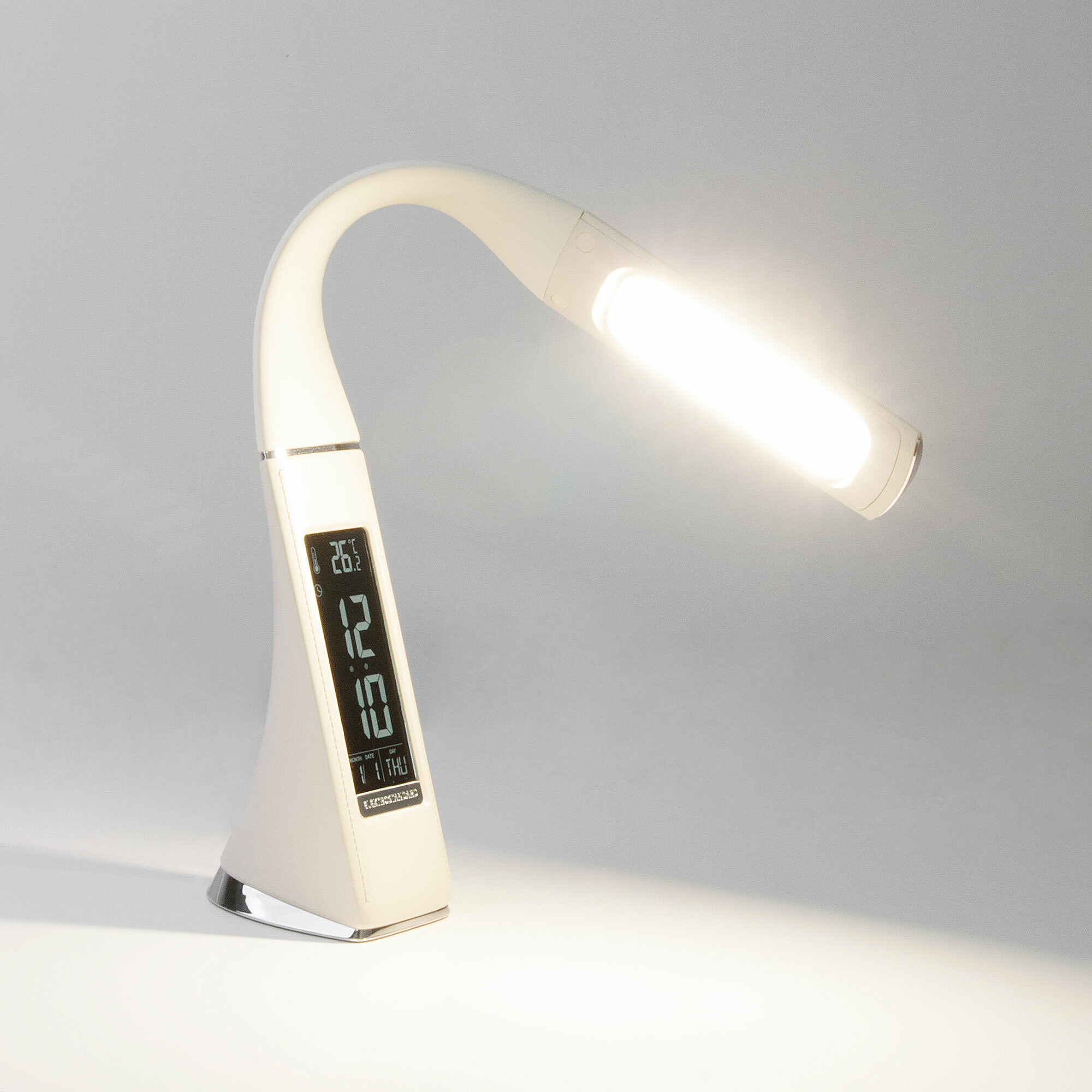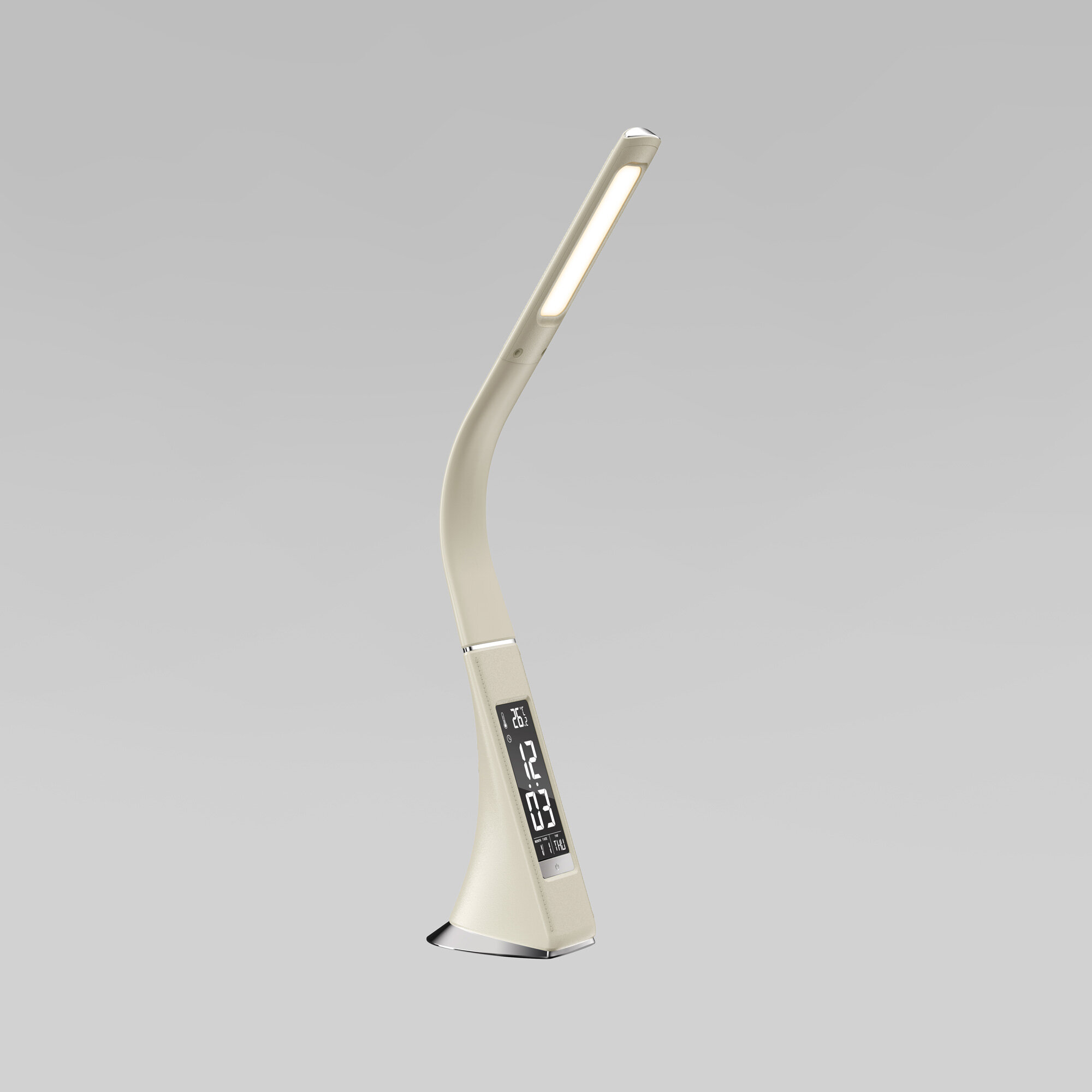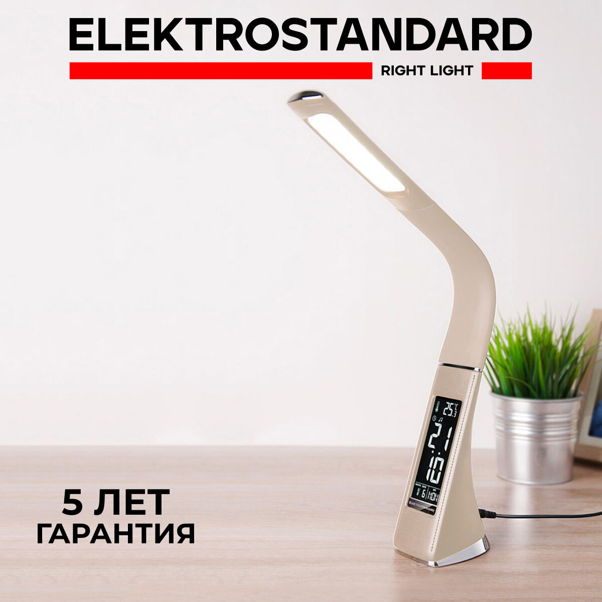 Светильник настольный светодиодный 6 Вт 4200К 280лм сенсор-диммер, часы с будильником, календарь, термометр, Elektrostandard Elara бежевый (TL90220)
