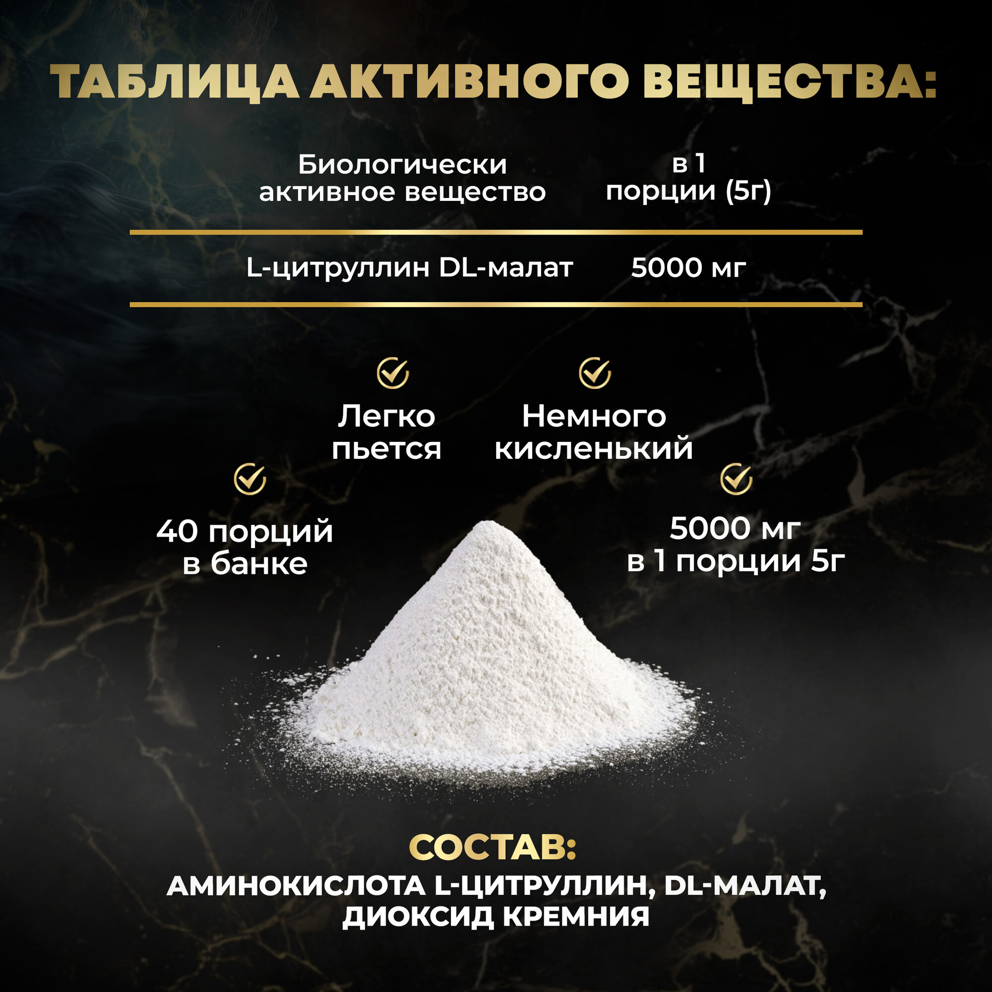 Аминокислота цитруллин / citrulline malate / L-Citrulline / цитруллин малат / порошок 200гр/ 40 порций интересное: