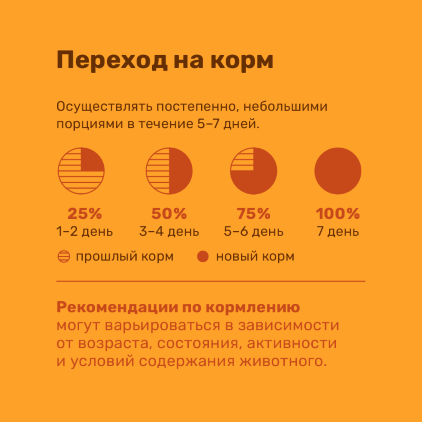 | Дозировка | - вес собаки 4-8 кг - 400-800 г - вес собаки 9-14 кг - 900-1200 г - вес собаки 15-24 кг - 1300-1800 г - вес собаки 25-34 кг - 1900-2300 г |