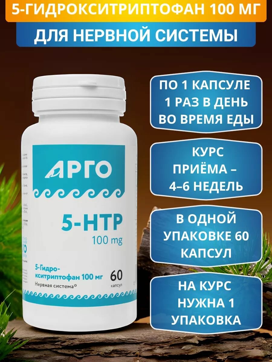 Купить 5-Гидрокситриптофан 100 мг от Nutricare, 60 капсул, Арго. БАД при стрессе, нервном перенапряжении, бессоннице, депрессии