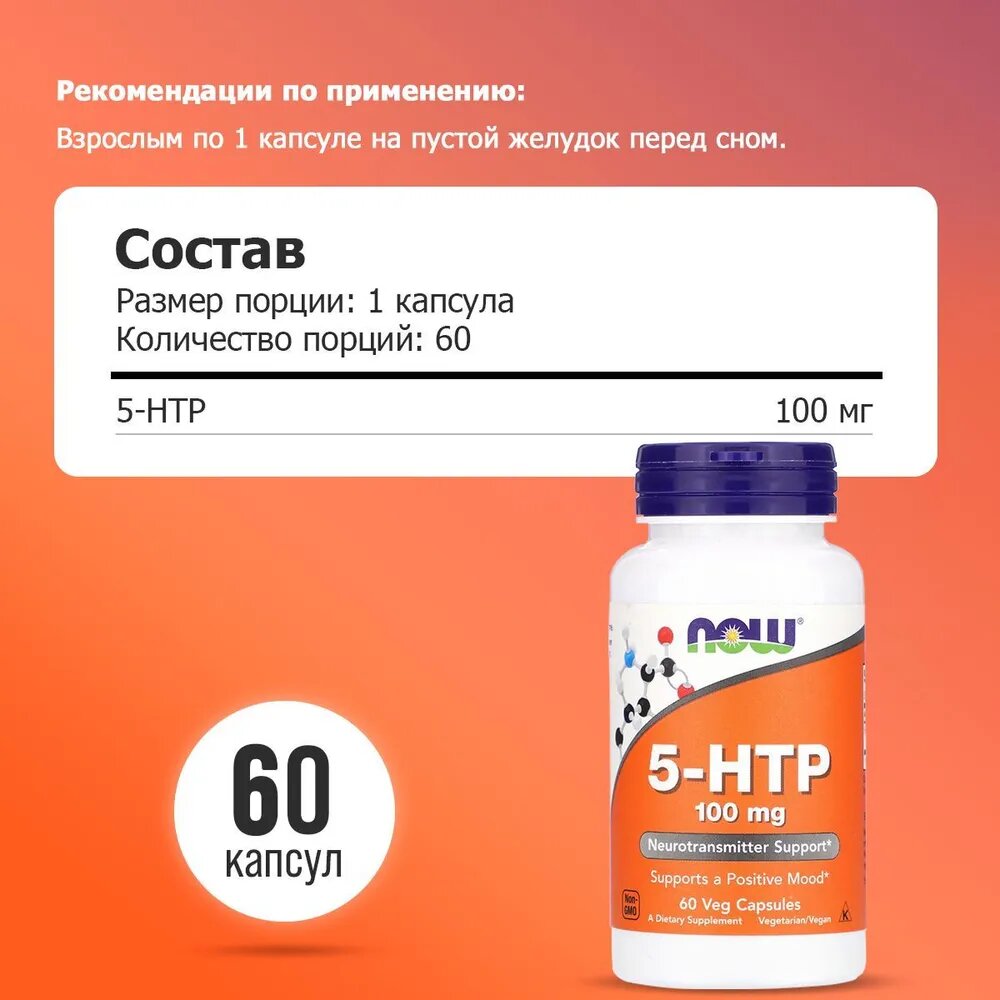 Капсулы NOW 5-HTP, 100 мг, 60 шт.