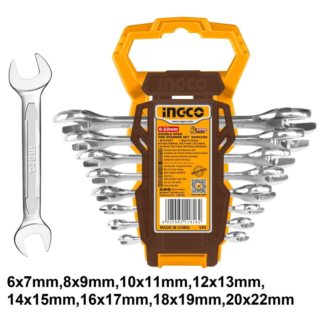Набор двусторонних рожковых ключей Ingco INDUSTRIAL HKSPA2088 6-22 мм 8 пред.