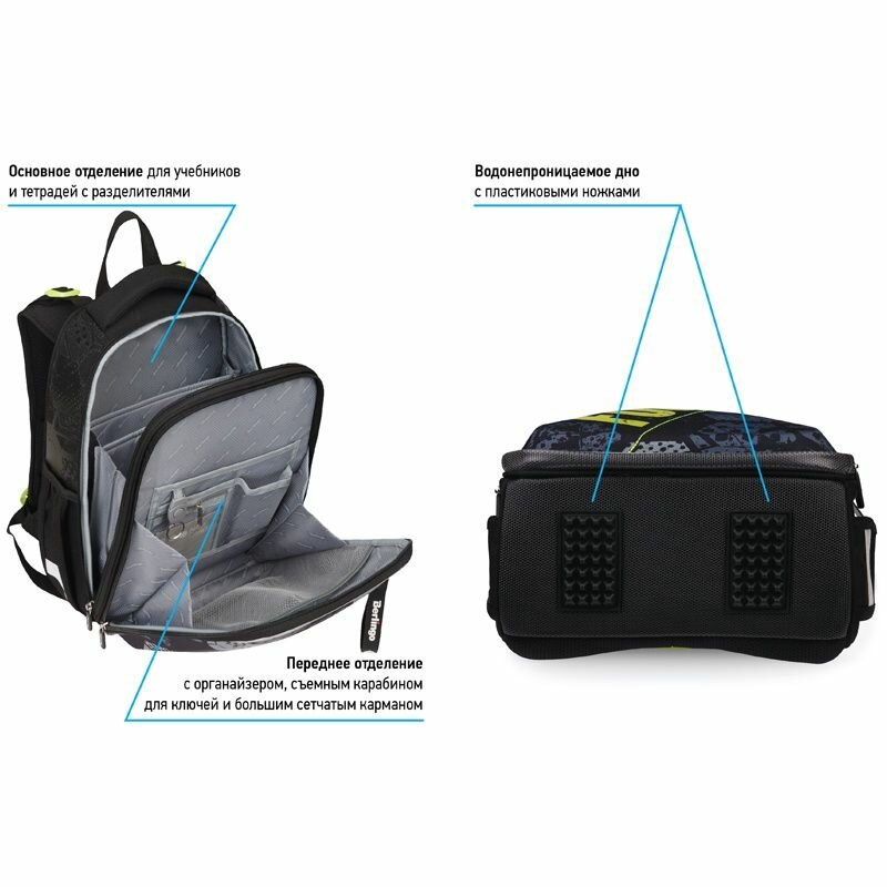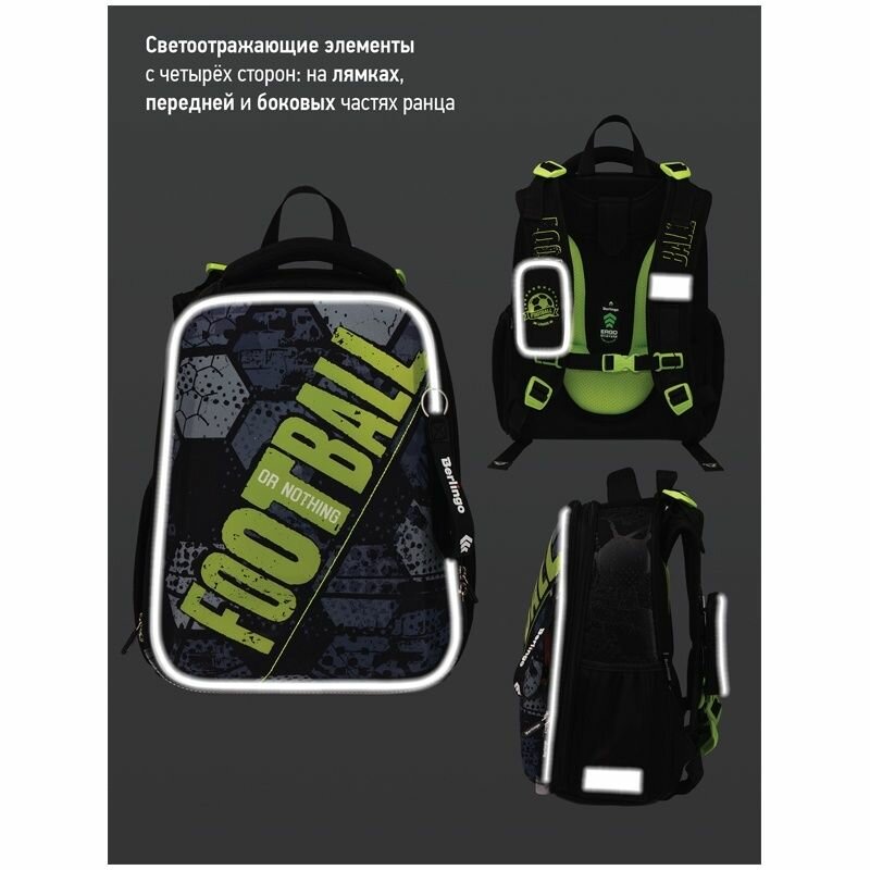 Berlingo ранец/ рюкзак/ школьный с ортопедической спинкой для мальчика Expert Football or nothing, темно-серый/зеленый