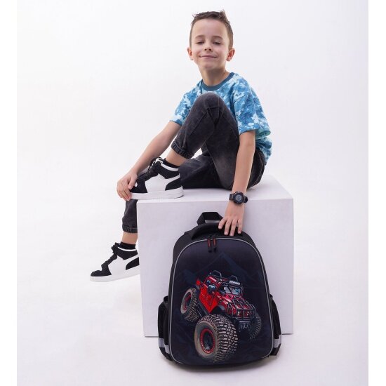 Купить Ранец Пифагор EVA BASIC, 1 отделение, эргономичная спинка, "Big wheels", 39х30х16 см, 271378