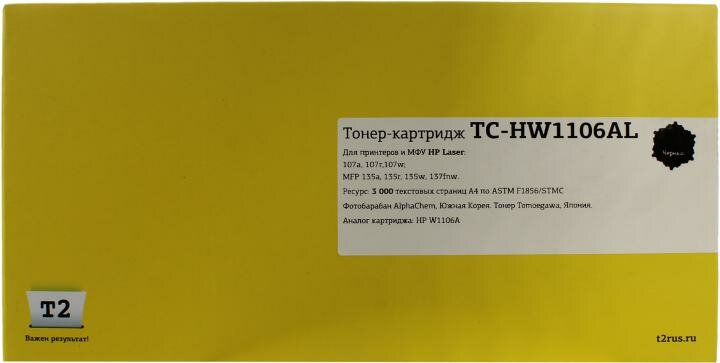 Купить Картридж лазерный T2 Т2 TC-HW1106AL для HP Laser 107a/107r/107w/MFP 135a/135r/135w/137fnw (3000 стр.) черный, с чипом