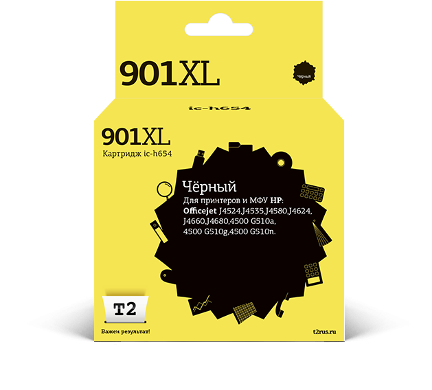 T2 Cc654ae Картридж T2 901xl для HP Officejet J4524/J4535/J4580/J4624/J4660/J4680/4500 G510, черный .